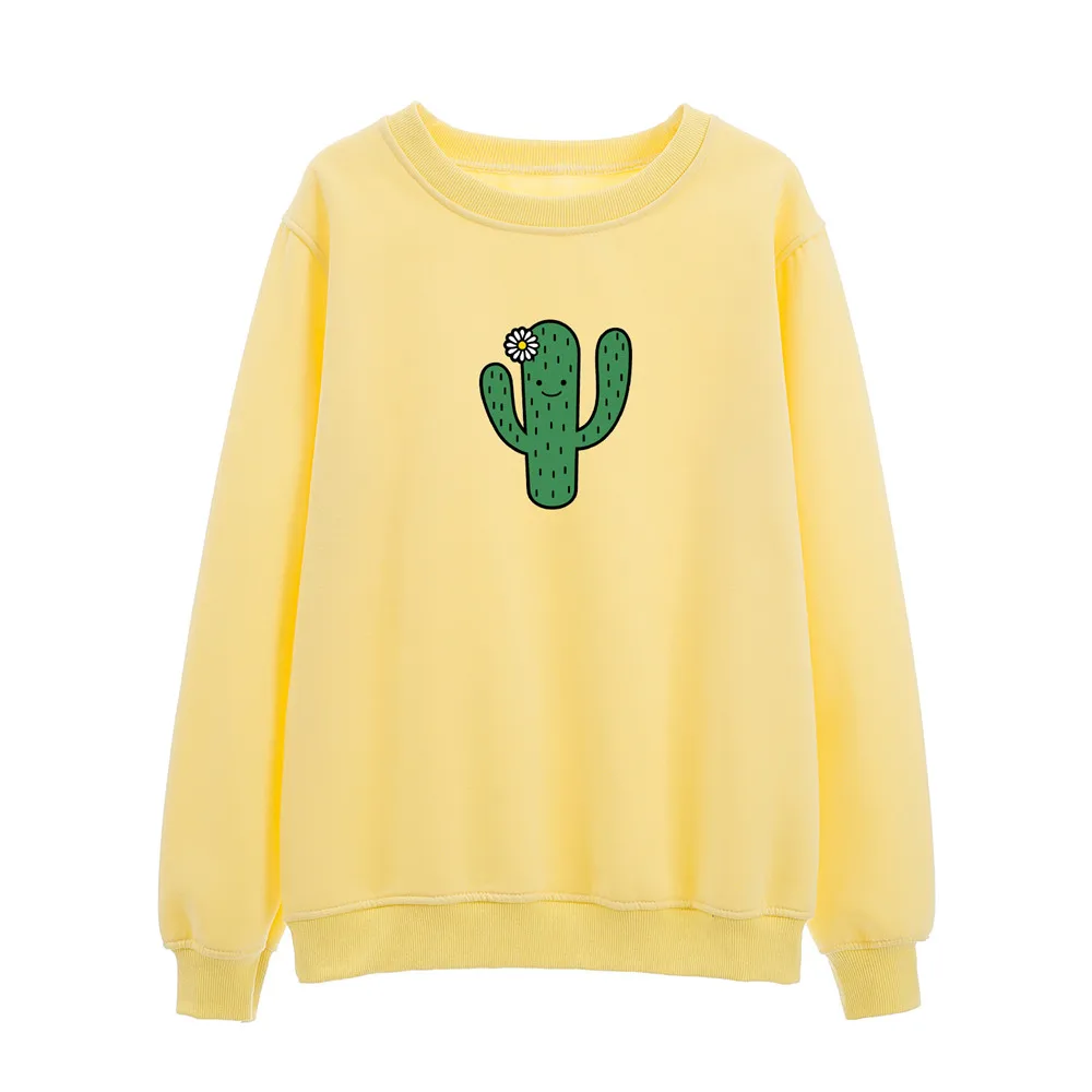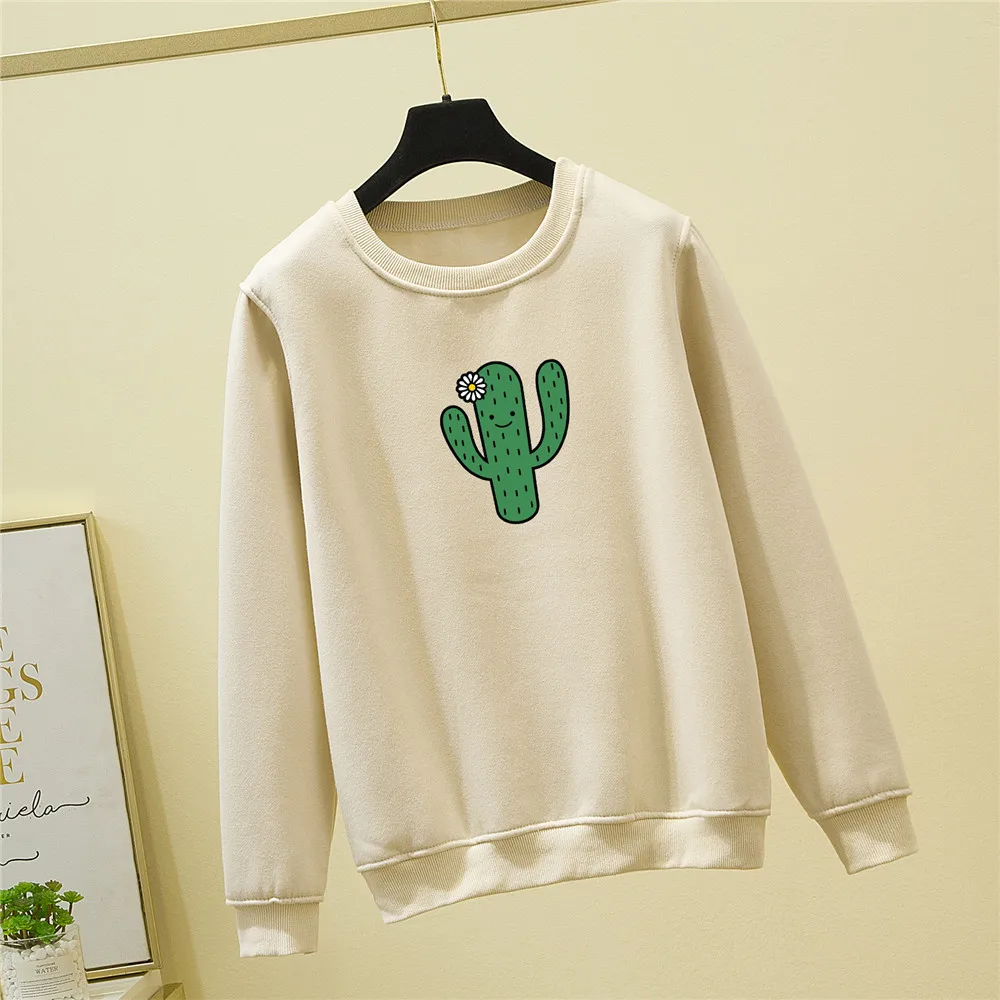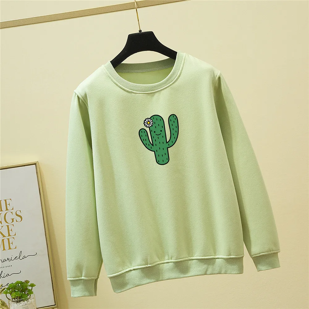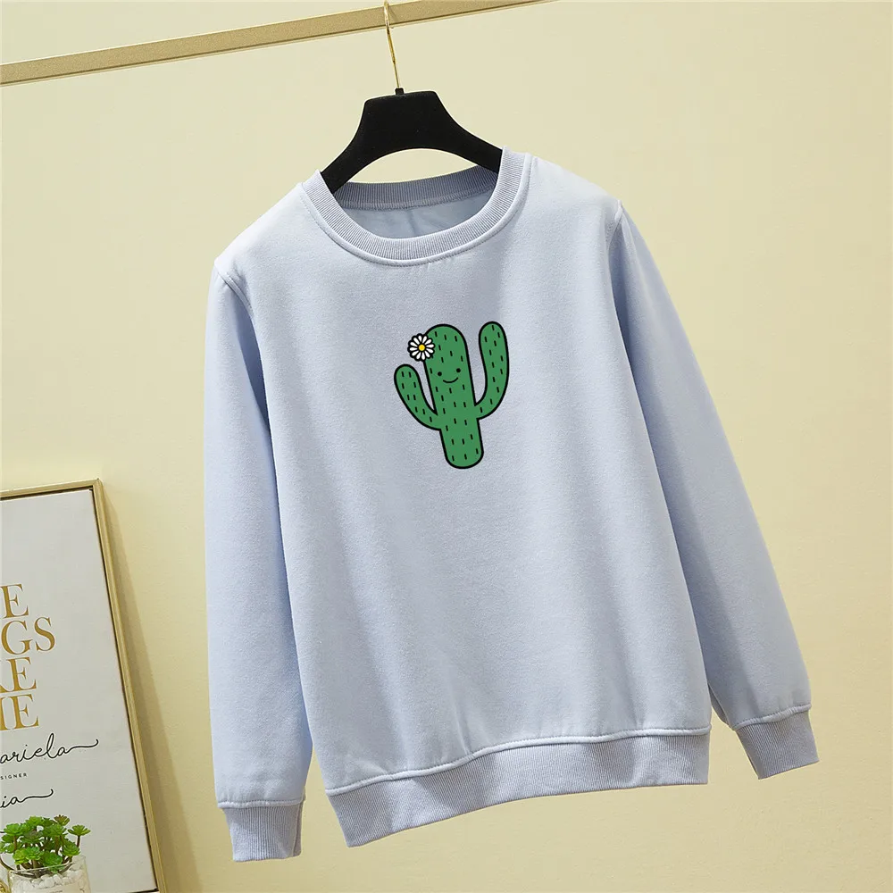 Худи с изображением кактуса, свитшот, Женский пуловер, свитшот для девочек с длинным рукавом, красивая эстетичная одежда с принтом