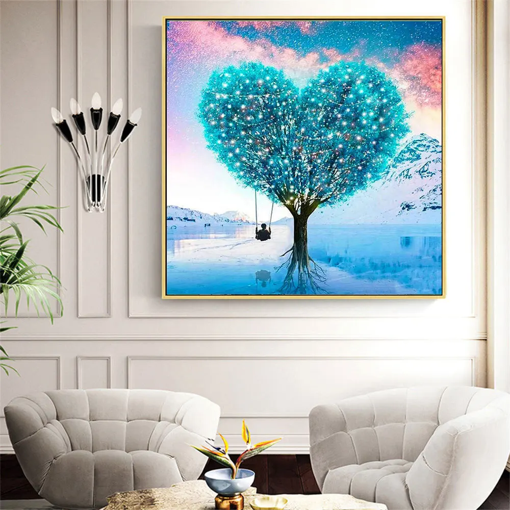 Алмазная 5d картина HUACAN с деревом, мозаика сделай сам, пейзаж, полноразмернаякруглая Вышивка крестиком, Набор для творчества с сердцем