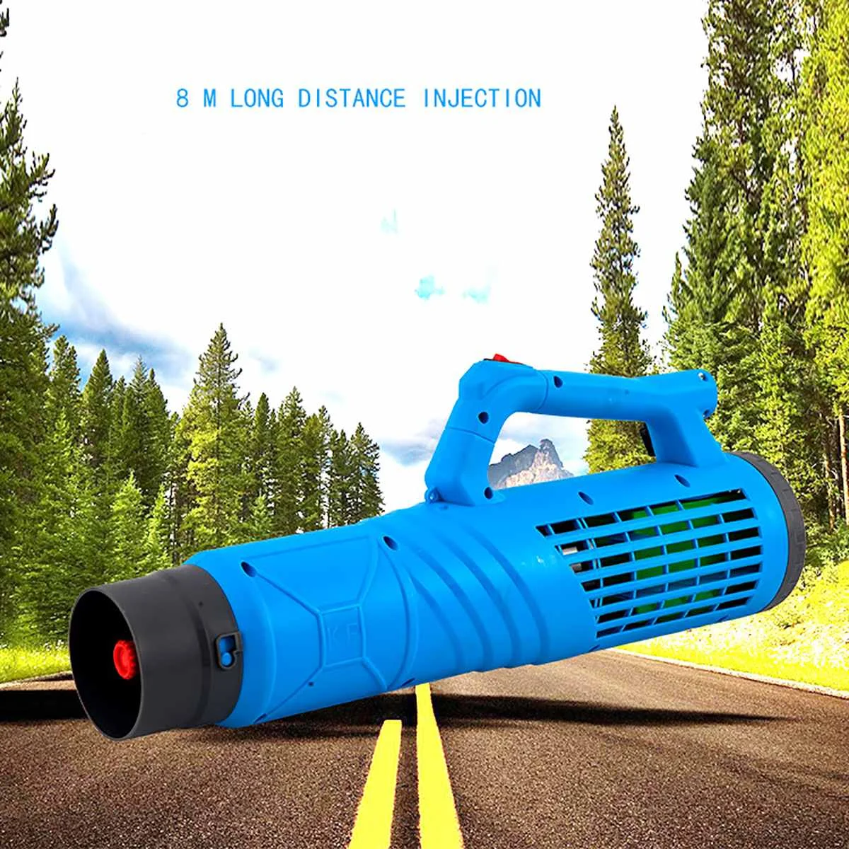 Технические характеристики: Цвет: синийМатериал: ПВХМощность: 450 ВтТок: 4,5 AНапряжение: 12 ВСкорость ветра: 12-14 м/сДвигатель: катушка с медным сердечникомШум: 80-85 дБРазмер: 59,5x23x14 см (23,4x9x5,5 дюйма)Расстояние распыления: 8 метровПодходит для 12 литиевых батарей, которые не входят в комплект