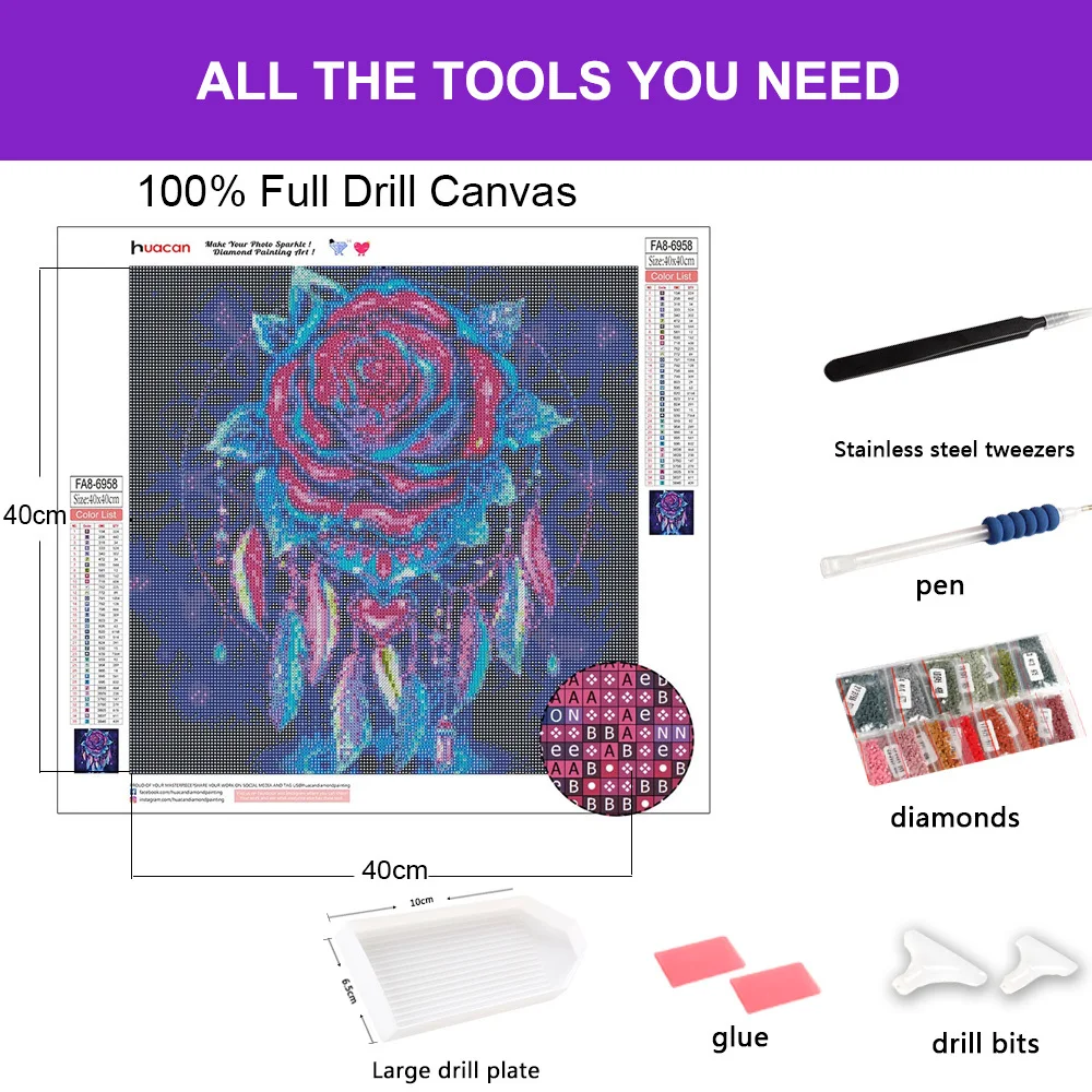 HUACAN 5D Алмазная картина розами алмазная вышивка цветок мозаика полноразмерное украшение для дома