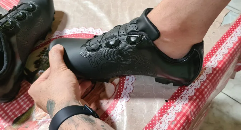 Прибыло в течение 16 дней в Северную Бразилию. Кроссовки были хорошо упакованы и отделка-это материал и высокое качество! Отличная система застежки делает ногу комфортной. Подошва очень жесткая, идеально подходит для MTB. Внимание к нумерации! Если у вас 26 см в длину стопы, купил правильный размер 8,5 = 26,5 см! Если бы купил 8,0, было бы плотно. Затем купите на 1 номер больше, чем ваш не тугой. Надеюсь, что помогли. Скоро вернусь, чтобы обсудить кроссовки.