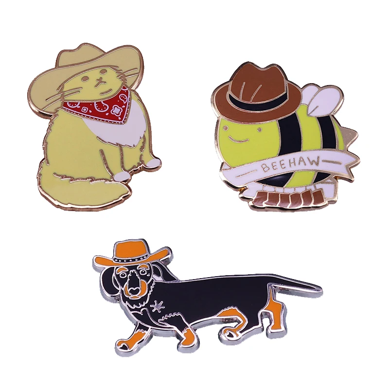 Симпатичные ковбойские животные Броши Собака Такса щенок Китти и пчела Beehaw забавные эмалевые булавки