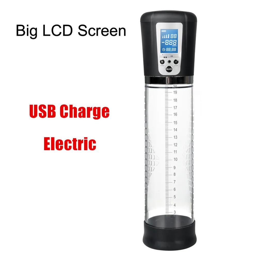 Электрический насос для пениса с ЖК-дисплеем, вакуумный насос, секс-игрушки для взрослых мужчин, увеличитель пениса 18 +, мужской удлинитель пениса для эрекции, тренировочный удлинитель