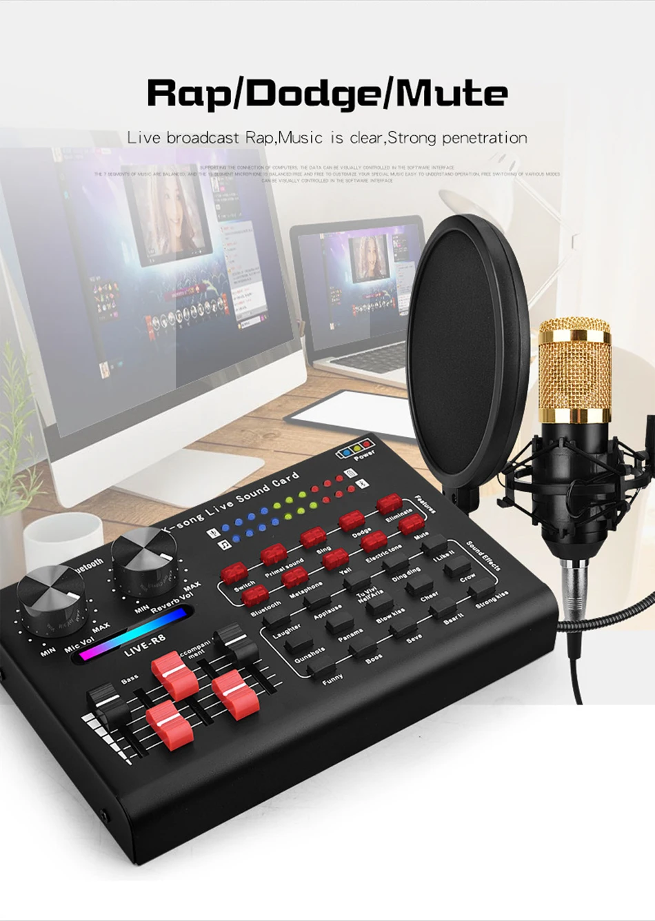 Конденсаторный микрофон bm 800, студийная звуковая карта R8 в комплекте, микрофон bm800 для ПК, компьютера, телефона, караоке, пения, игровой микрофон, подставка