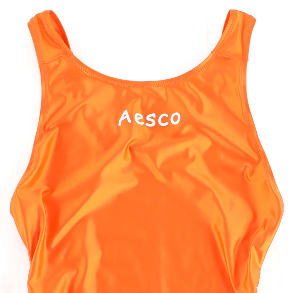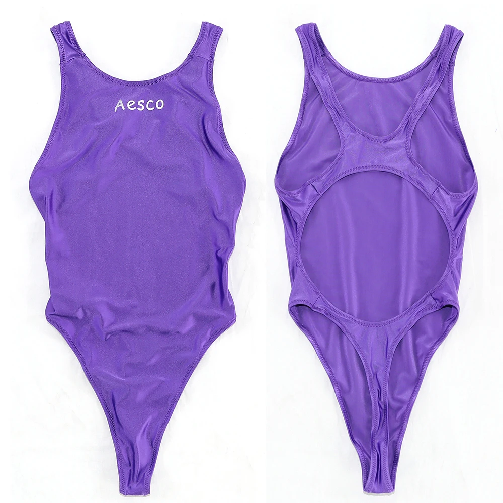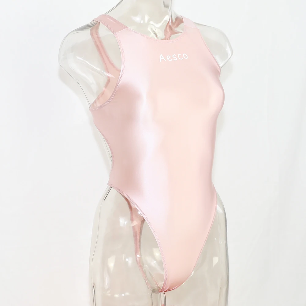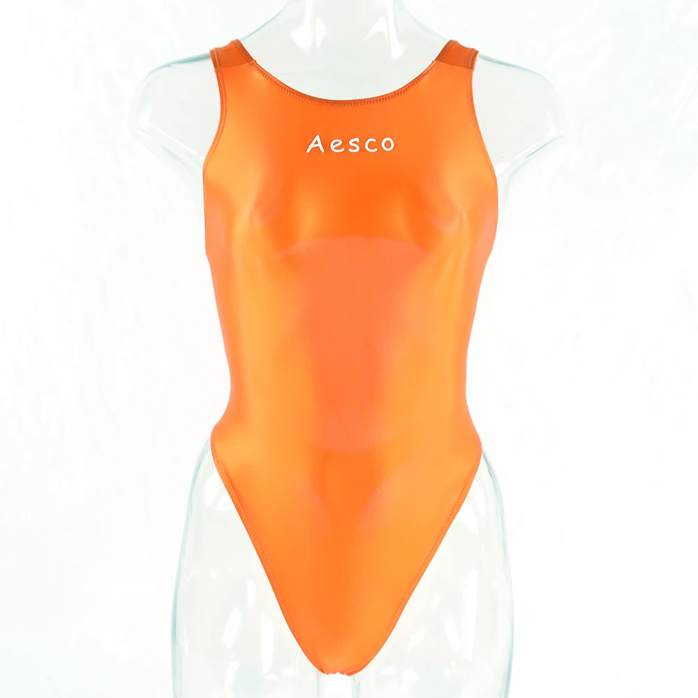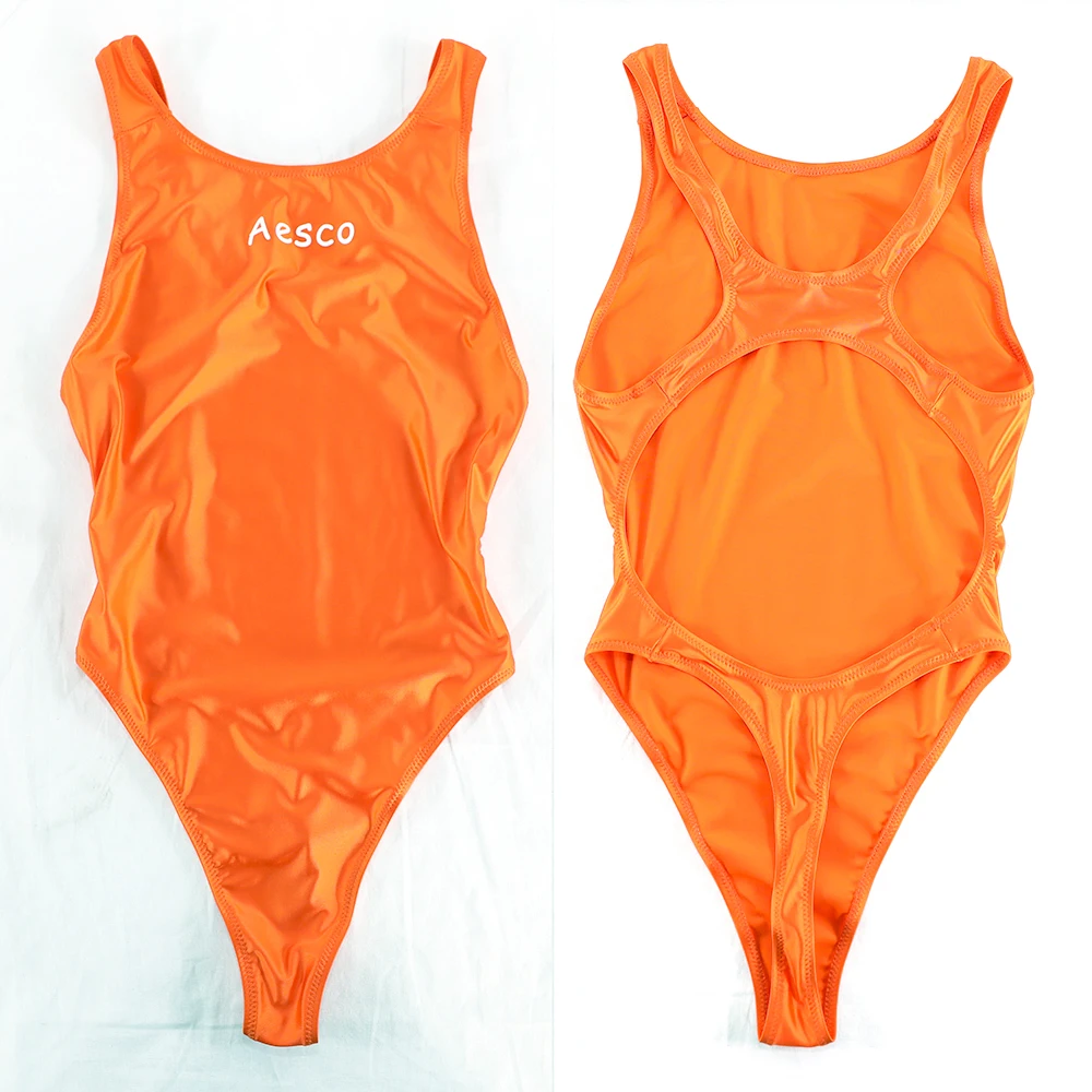 Сексуальный женский глянцевый масляный оранжевый Цельный купальник облегающий эластичный шелковистый модный Т-образный размера плюс купальник с высокой вилкой