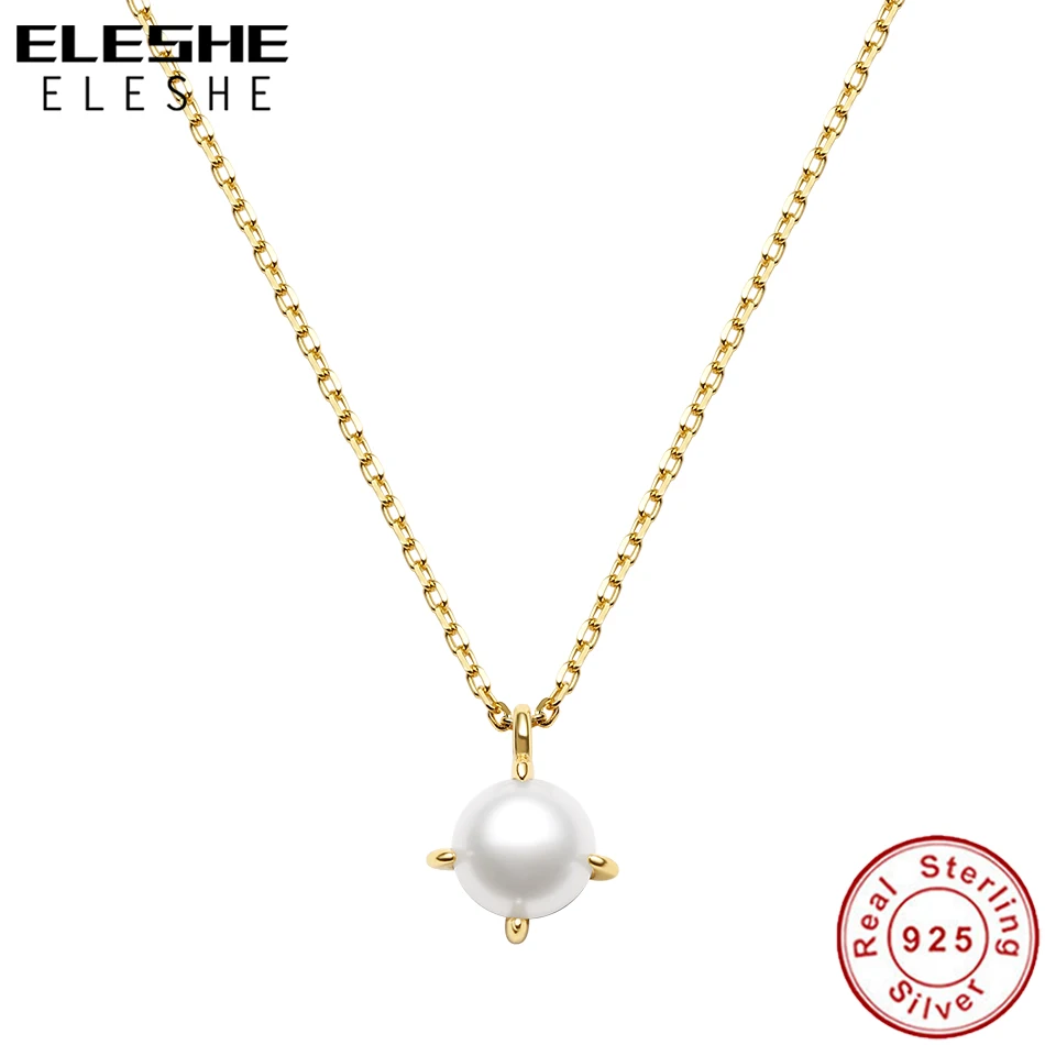 ELESHE 2021 новый 925 стерлингового серебра с 18K позолоченное ожерелье пресной воды Жемчужное ожерелье с подвеской для женщин, хорошее ювелирное изделие
