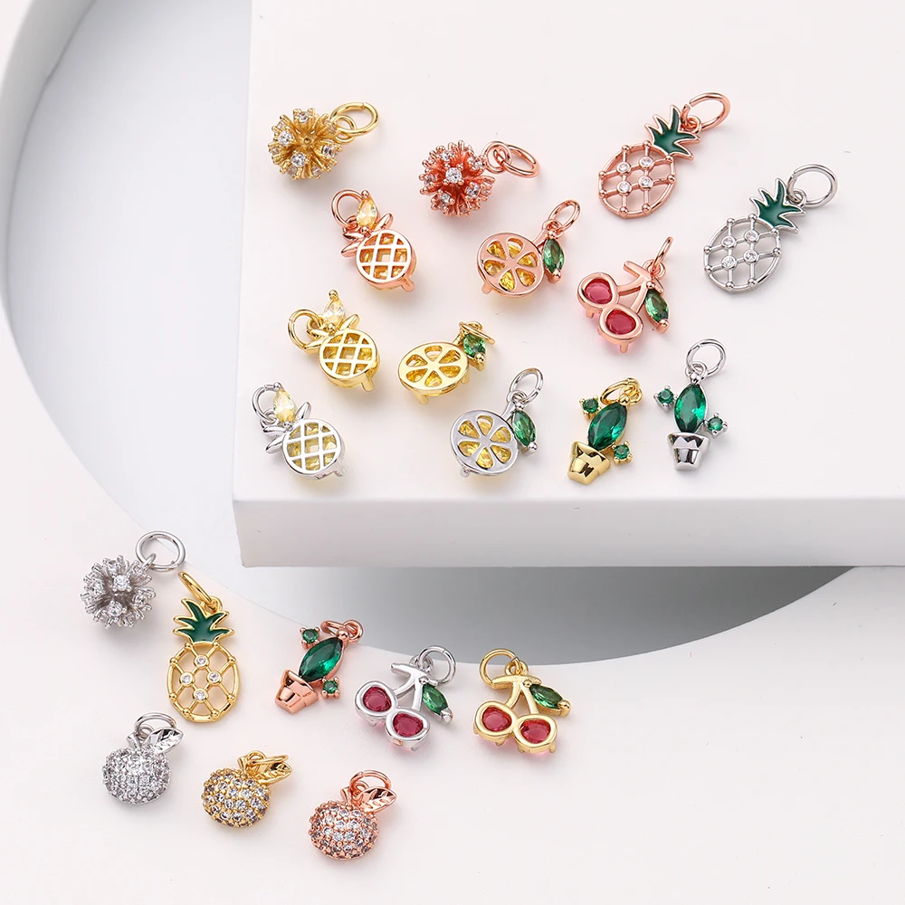 Подвески в виде фруктов шармы для изготовления ювелирных изделий оптом вишня яблоко дизайнерские ювелирные изделия шармы для Diy серьги ожерелье браслет медь