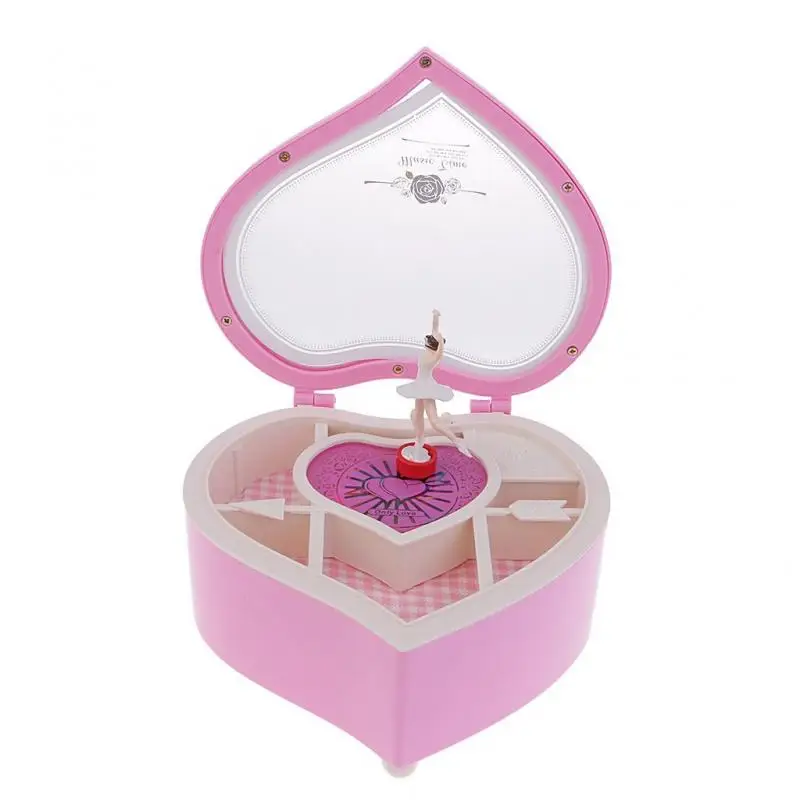 Музыкальная шкатулка в форме сердца для танцев, балерины, ювелирная шкатулка для девочек, карусель, рукоятка, музыкальная шкатулка, подарок