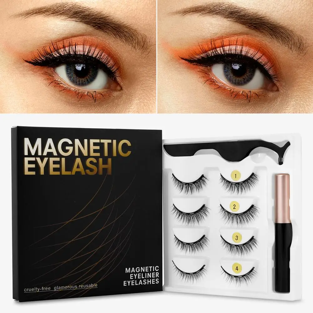 4 пары магнитных ресниц 3D норковые накладные ресницы Магнитный жид...