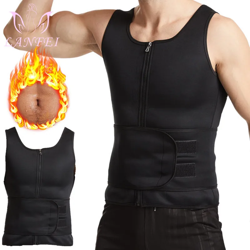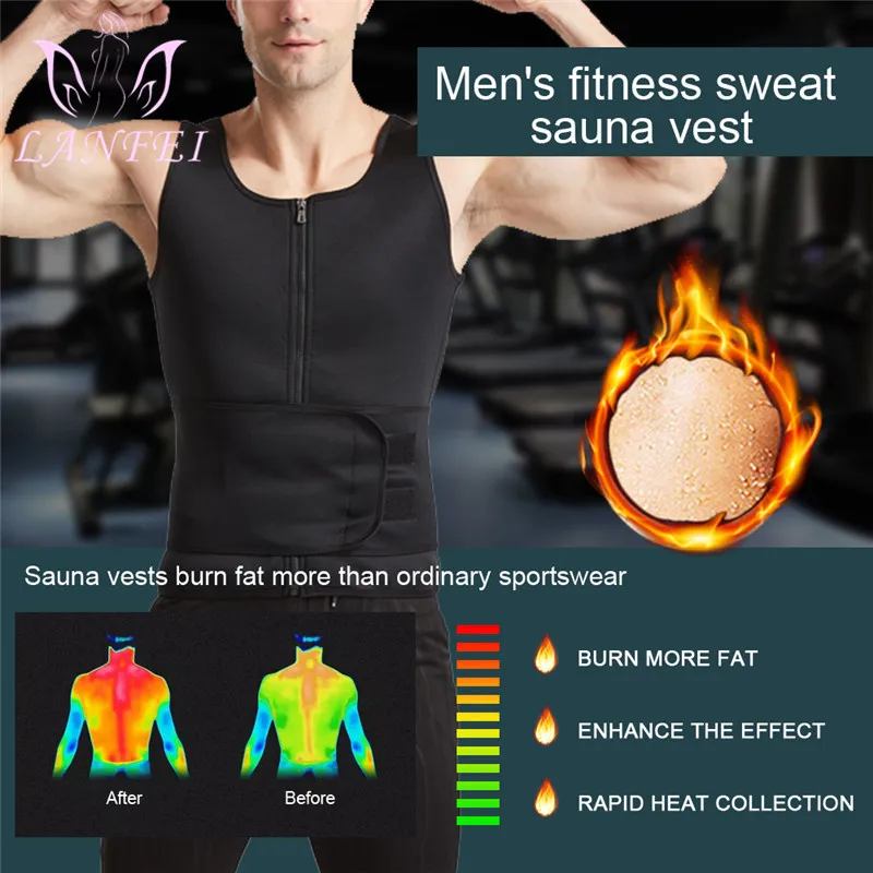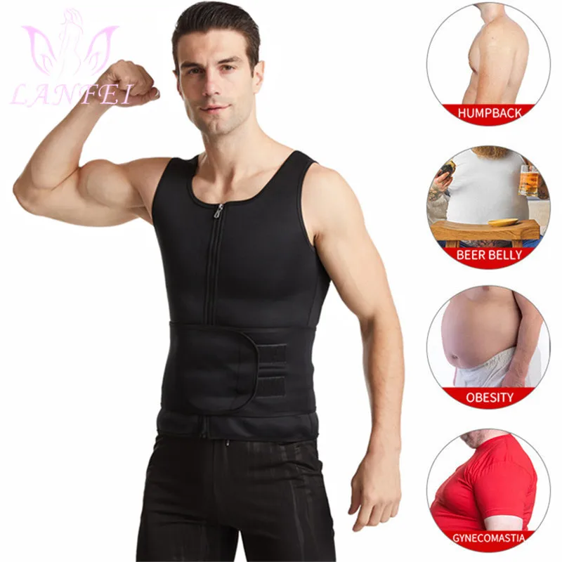 LANFEI сауна пот жилет Горячий неопрен мужской талии тренажер формирователь тела с молнией компрессионная рубашка тренажерный зал фитнес похудение рубашка Топ