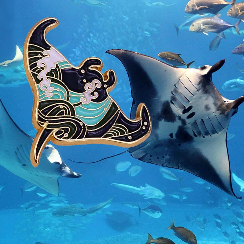 Жесткая эмалированная брошь Manta Ray в виде морской рыбы, животных