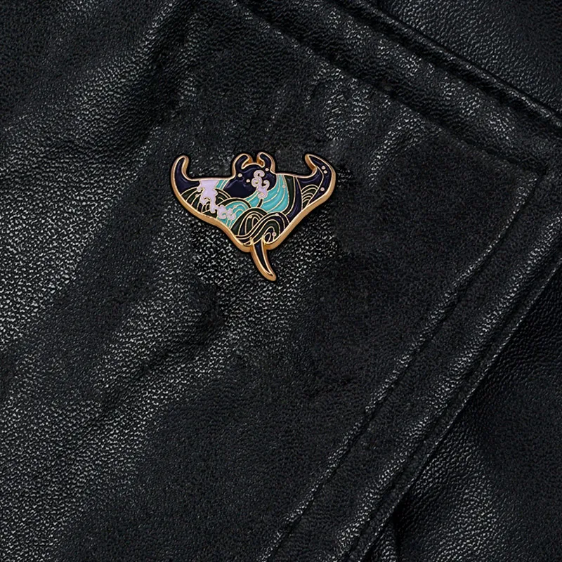Мягкая эмалированная брошь Manta Ray в виде морских животных, большая волна, дьявол, рыба, художественные украшения