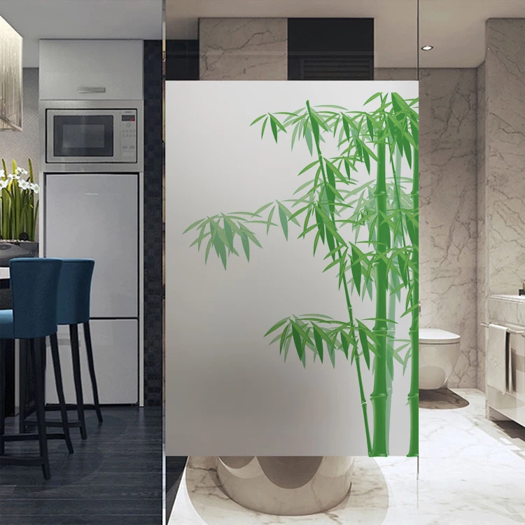 Зеленые Бамбуковые листья с рисунком клеевая Электростатическая пленка для стекла окна непрозрачная домашняя раздвижная дверь для ванной пленка для конфиденциальности