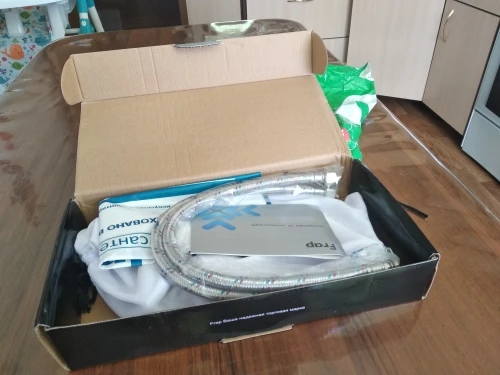 привезли курьером,что радует. В комплекте идёт гибкая подводка 45см, мне не подошла (коротковат) на вид качественные с двойным уплотнительным кольцом.