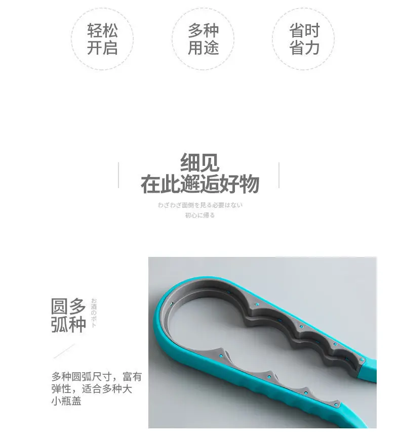 1. Четыре в одном открывалка для бутылок: Эта открывалка для бутылок имеет четыре различных отверстия, которые могут быстро открыть крышку пивной бутылки или консервов, легко открыть крышку различных размеров бутилированных напитков, И легко порвать или поддевать кольцо для консервов