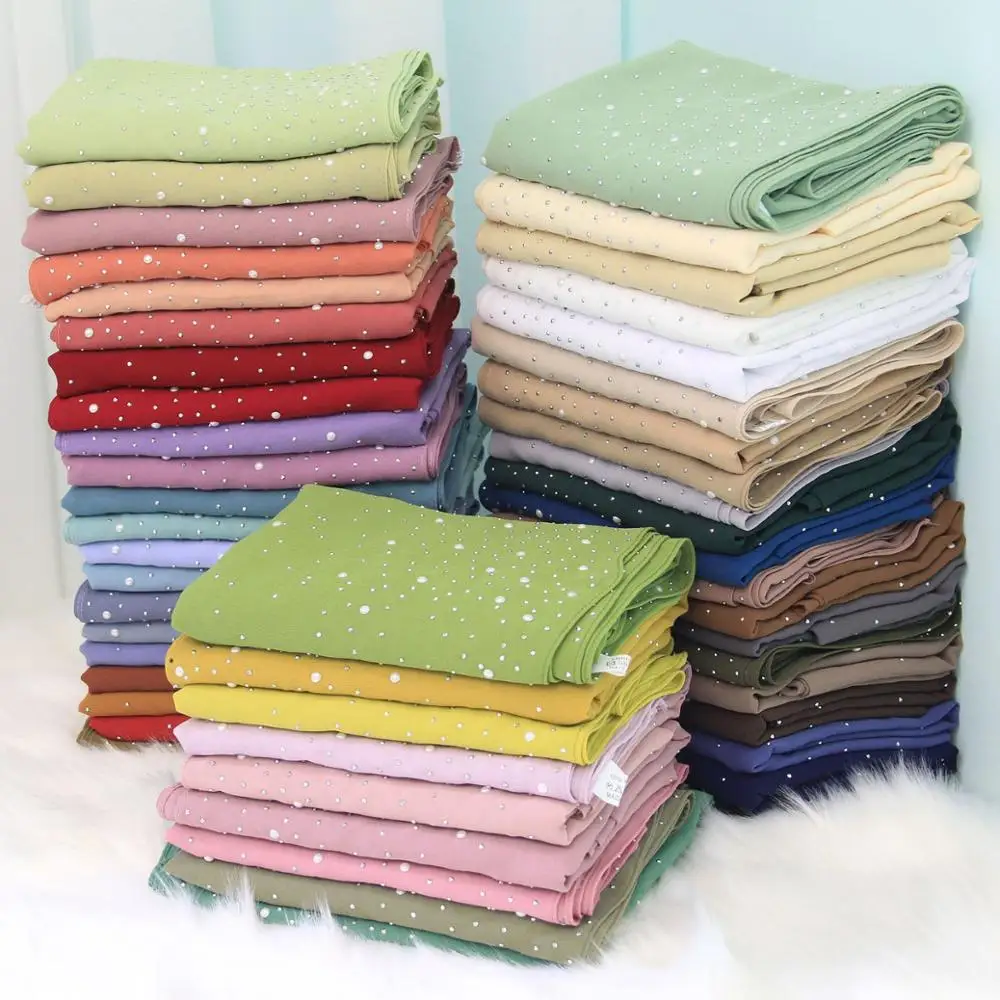 Новые простые шифоновые шали-хиджаб из пузырчатой ткани с бриллиант...