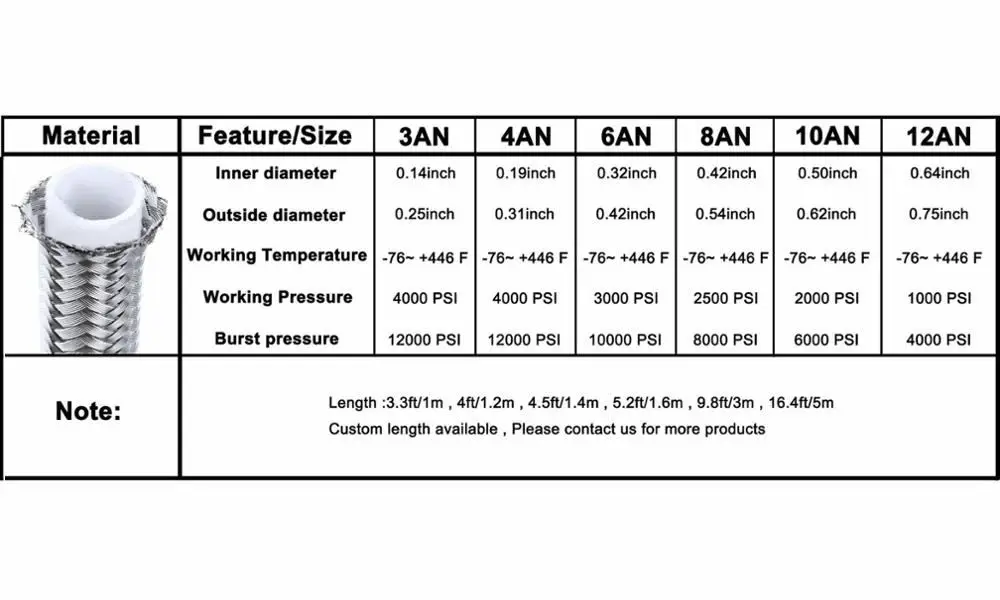 AN6 топливный шланг из нержавеющей стали PTFE x 16 футов/5 м