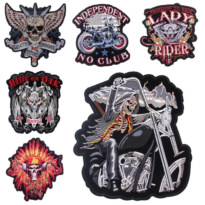 Большие байкерские нашивки с черепом для одежды, большие вышитые на...