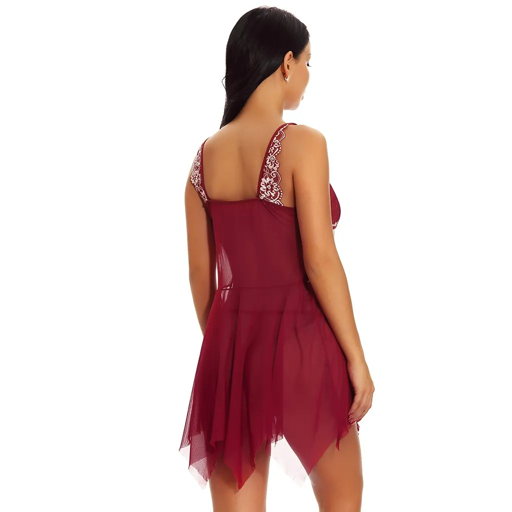 1.Мягкий кружевной и сетчатый babydoll для женщин