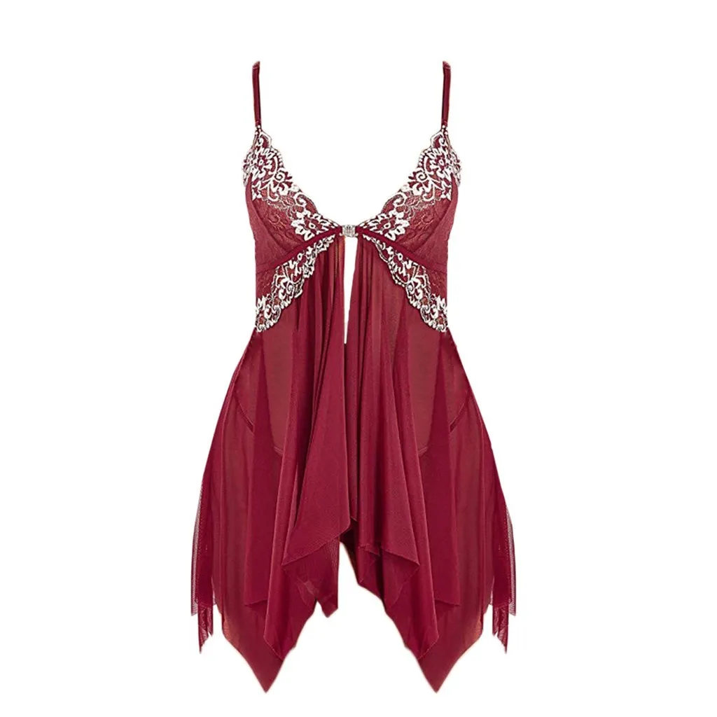 Женское кружевное сексуальное нижнее белье, ночная рубашка для женщин с застежкой спереди, комбинация с кружевом и V-образным вырезом, сетчатая одежда для сна, ночная рубашка, пижамы для женщин