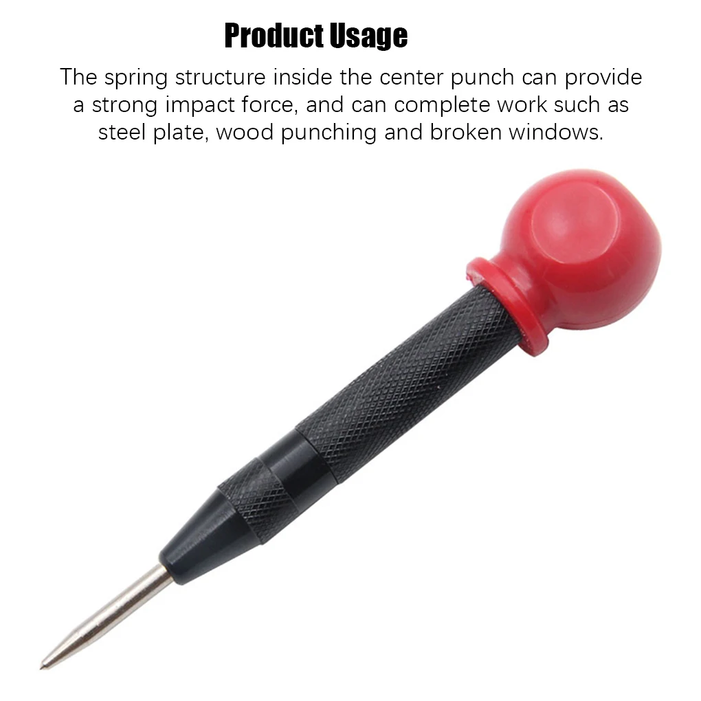 Описание:Этот тип пробойника разработан с 2 типами, один с крышкой, другой без крышки, вы можете заказать в соответствии с вашими потребностями.Центральный перфоратор прост в использовании, направляйте тяжелую головку в точку определения местоположения, удерживайте ручку и нажимайте ее в направлении ударов. После того, как удары будут отжаты назад на короткое расстояние, пружина будет выскальзывать удар, производя яму. Вам не нужно использовать молоток и другие инструменты.Если Вы застреваете в машине, вы также можете сломать окно в этом центре, экономя время и силы для вас.Пружинная конструкция работает с сильной ударной силой, которая подходит для стальной доски, деревянной доски и ломающегося окна.Этот центральный перфоратор изготовлен из стального материала, который является прочным и не легко сломать, вы можете использовать его в течение длительного времени, не беспокоясь.Спецификация:Материал: сталь.Цвет: серебристый, синий, красный, черный.Размер: 128 мм.Примечание:Пожалуйста, учитывайте незначительные отклонения для данных измерений.В связи с неточной передачей цвета на экране монитора фактический цвет товара может немного отличаться от цвета на изображении.Посылка в комплекте:1 центральный перфоратор.