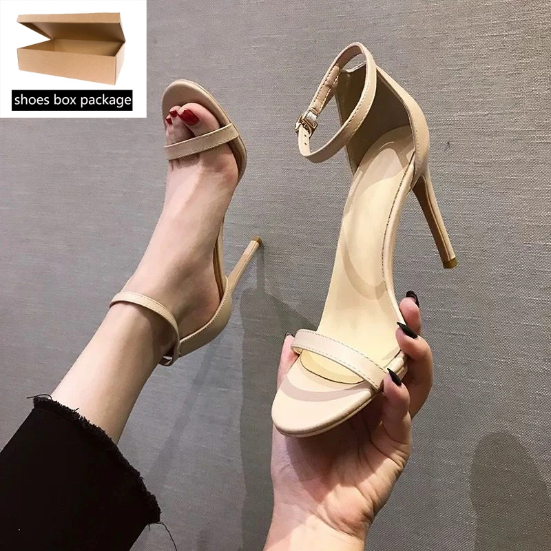 RYAMAGмодные белые женские босоножки с пряжкой новые летние универсальные черные женские туфли на высоком каблуке-шпильке Сказочный Стиль