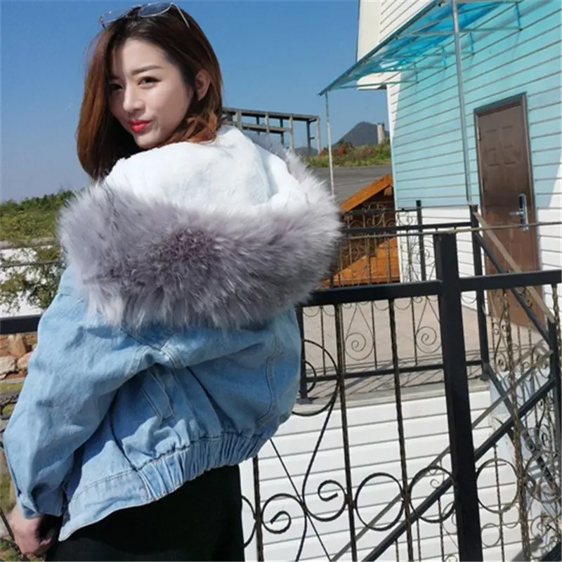 Женская джинсовая куртка с большим меховым воротником, зимнее бархатное плотное Женское пальто 2021, Короткое женское пальто из локомотивной овечьей шерсти