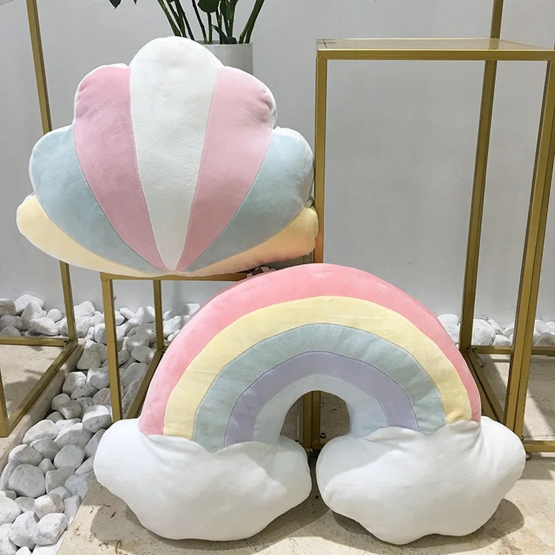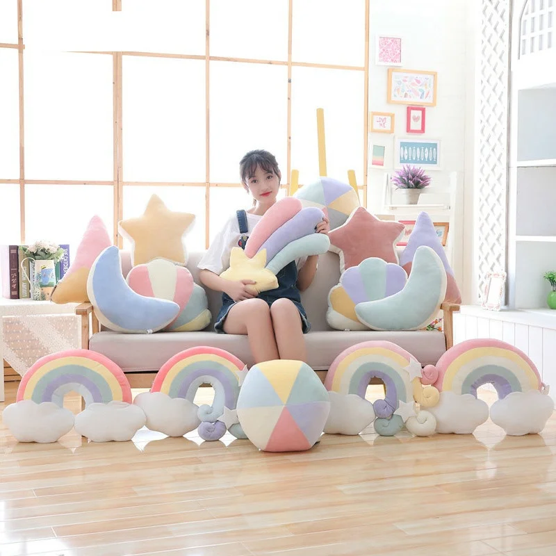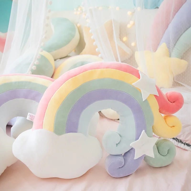Плюшевые подушки в виде неба, яркие цвета, радуга, облако, звезда, ...