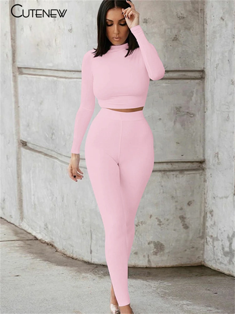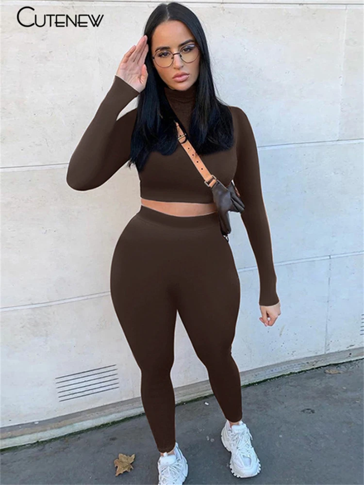 Комплект из двух предметов Cutenew, однотонные леггинсы с длинным рукавом, женская футболка и спортивная облегающая уличная одежда, эластичный костюм, весна 2021