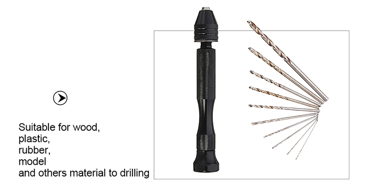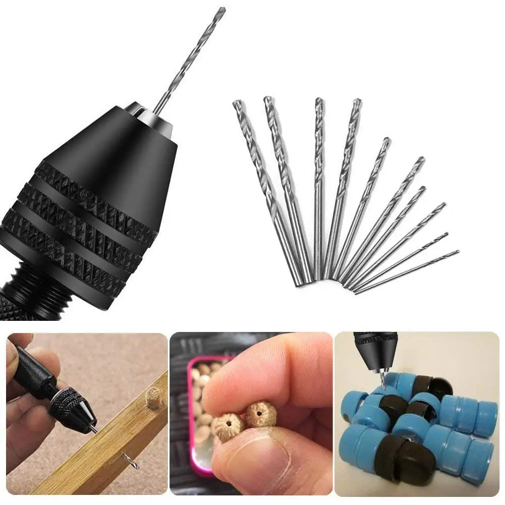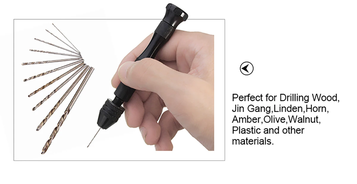 Особенности-Для алюминиевых ручных сверл хобби-Мини Деревянный ручной сверлильный патрон для ювелирного инструмента микро-сверло-Точный, точный и эффективный-Подходит для дерева, пластика, резины, модели и других материалов для сверления отверстий.-Не подходит для стали, железа, камня, таких твердых вещей-Идеально подходит для бурения древесины, Цзинь Ган, липы, рога, янтарного, оливкового, грецкого ореха, пластика и других материалов.-Мини микро сверло набор Pcb хобби-Микро быстрорежущее стальное сверло с прямым хвостовиком-Мини сверла, электрические сверла электроинструментыПосылка включает в себя:Ручная дрель-1 шт.