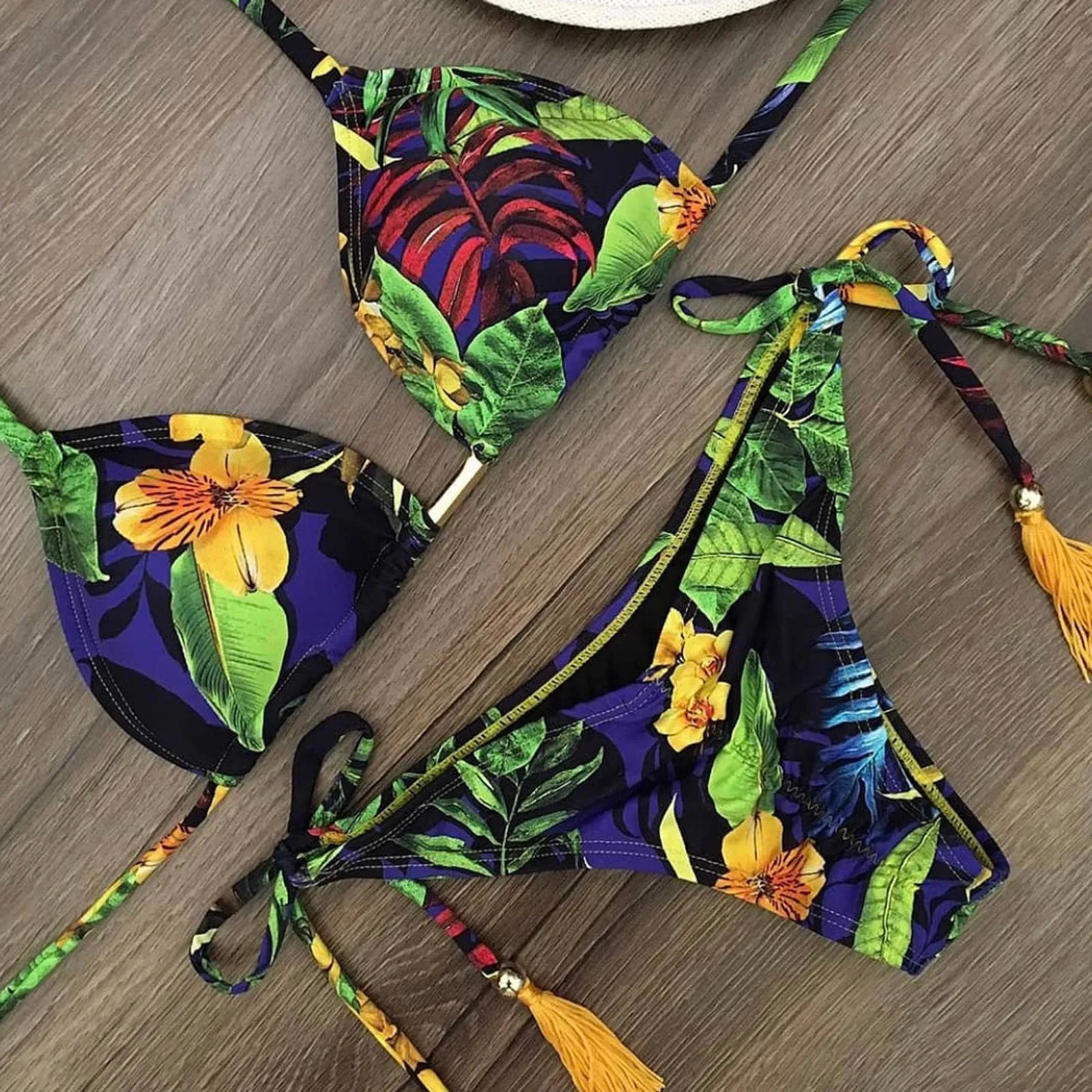 Женский бандажный комплект бикини пуш-ап, бразильский купальник, пляжная одежда, купальник