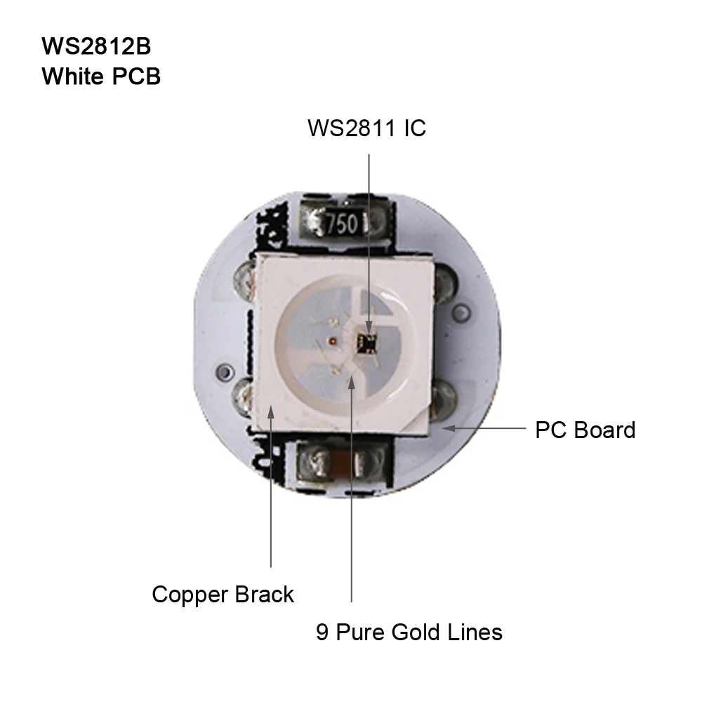 Схема управления и чип RGB интегрированы в посылка 5050 компонентов, формируют полный контроль точки пикселя.