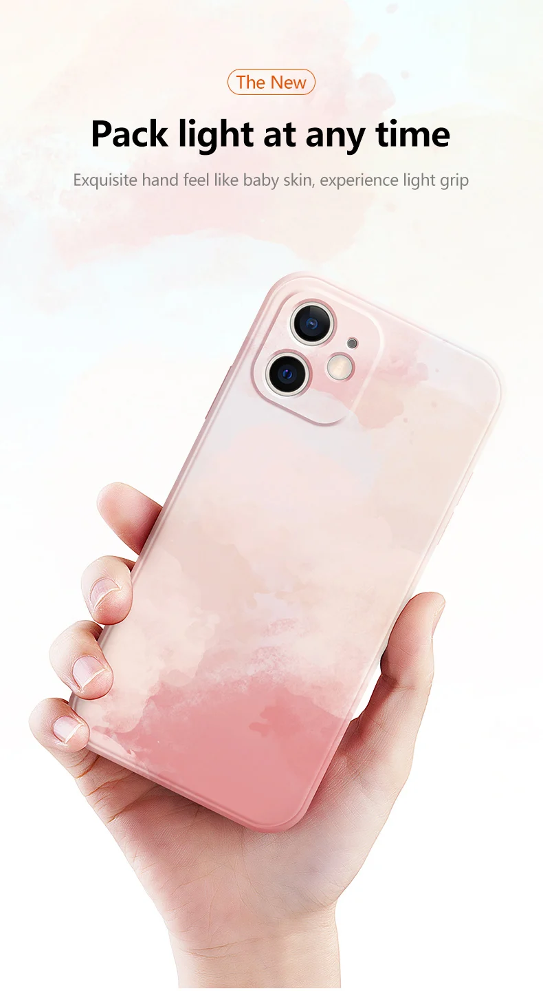 Ультратонкий чехол для телефона из жидкого силикона с акварелью для iPhone 13, 12, 11 Pro Max, SE, XSmax, XR, X, 8, 7 Plus, защитный чехол для камеры