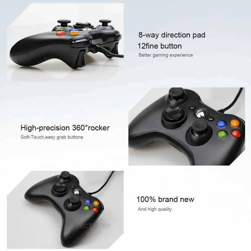 Este геймпад es совместимый с con la consola xbox 360. Оспаривание де пунто де presión, Dos motores de retroalimentación de vibración y una tecla de flecha de 8 vias que te ayudan a mantenerte en control, y el jugador parece que estan en el campo de batalla. El botón de inicio центральный en medio del mando con cable te da acceso rаpido a tus pelinculas digitales, matica y bibliotecas de juegos.