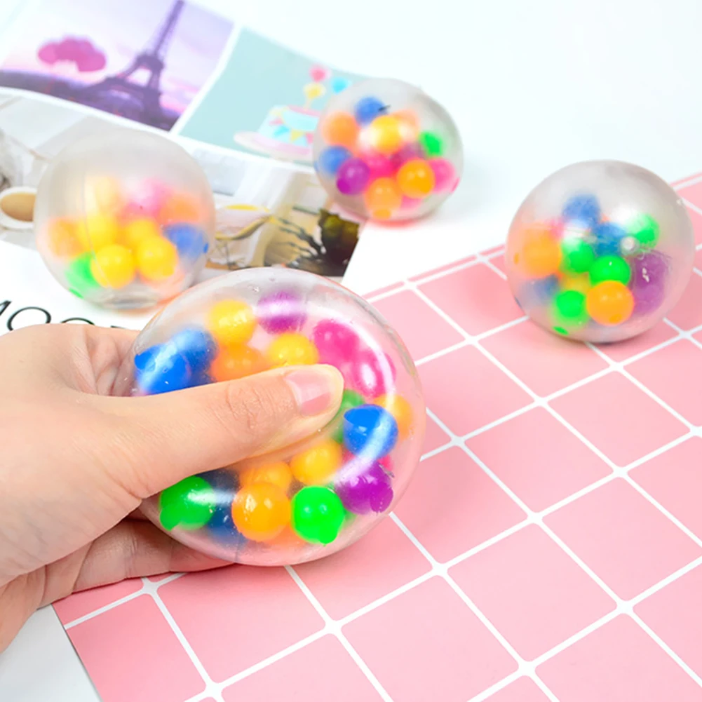Забавный мягкий мячик мяч для снятия стресса, цветные бусины, Непос...