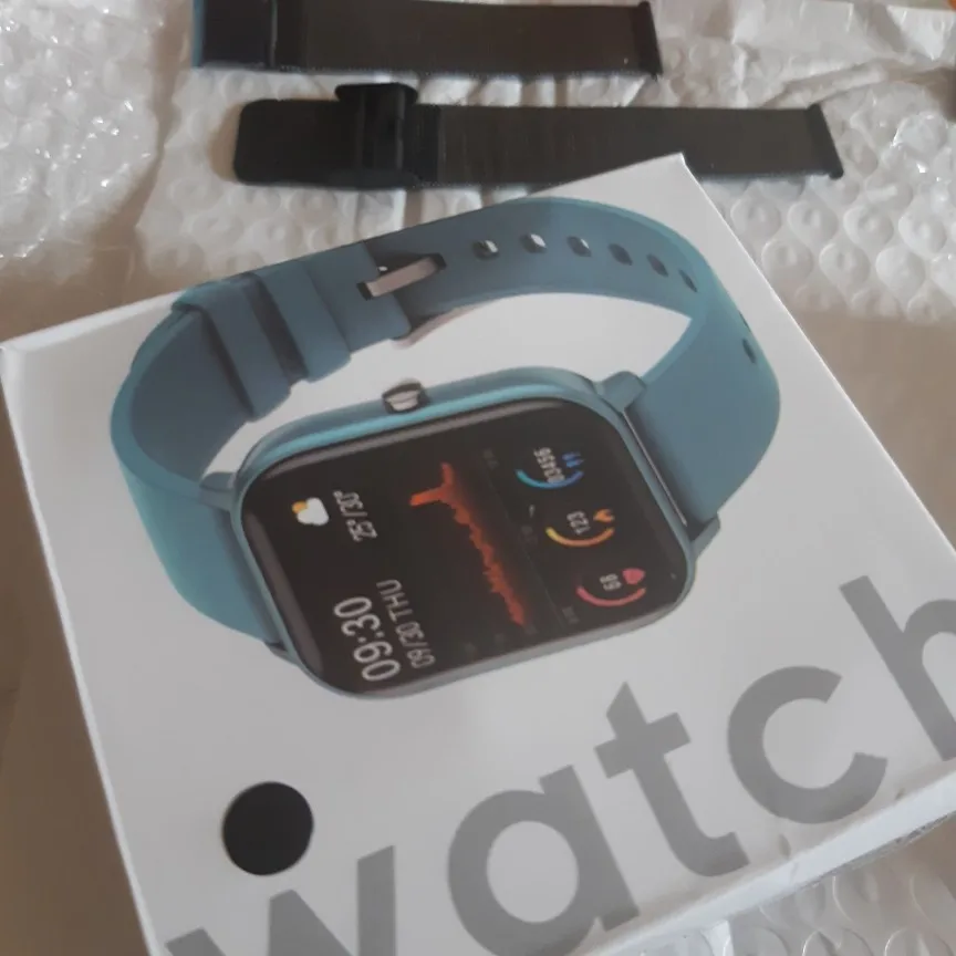 Часы вытащила в "Лови момент". Пришли быстро, отслеживались на всем пути. Упакованы были в обычный пакет. Коробка очень помялась, и на часах тоже присутствует вмятина (видно на 1 фото) . Пришли полностью разряженные. Зарядка работает. С телефоном коннектятся без проблем через спец. приложение по блютус. В приложении можно менять цвет шрифта, обои, делать измерения. Пульс, давление и уровень кислорода измеряют, но я думаю, что показатели неправильные. Звук при разговоре оставляет желать лучшего. Перевод на русский корявенький. В комплекте шла защитная пленка. В целом, заказом довольна, но за полную цену не взяла бы.
