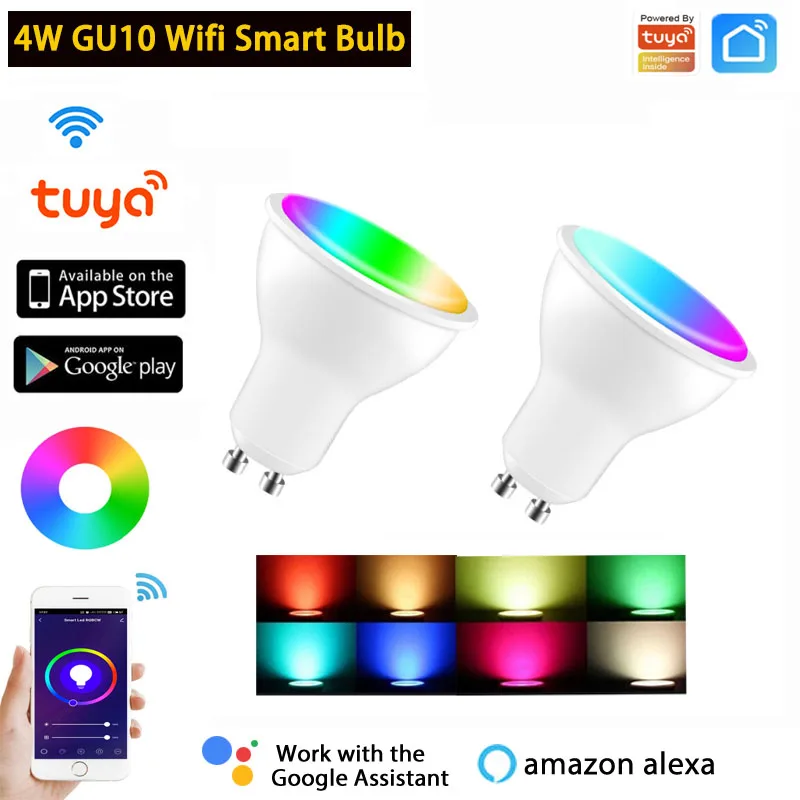 Умная Светодиодная лампа Gu10, 4 Вт, Wi-Fi, RGBCW, 85-265 в