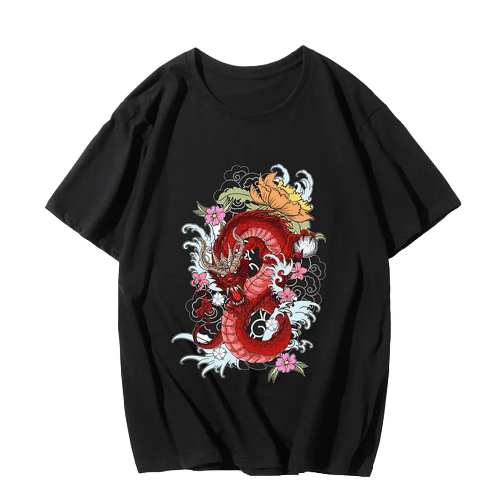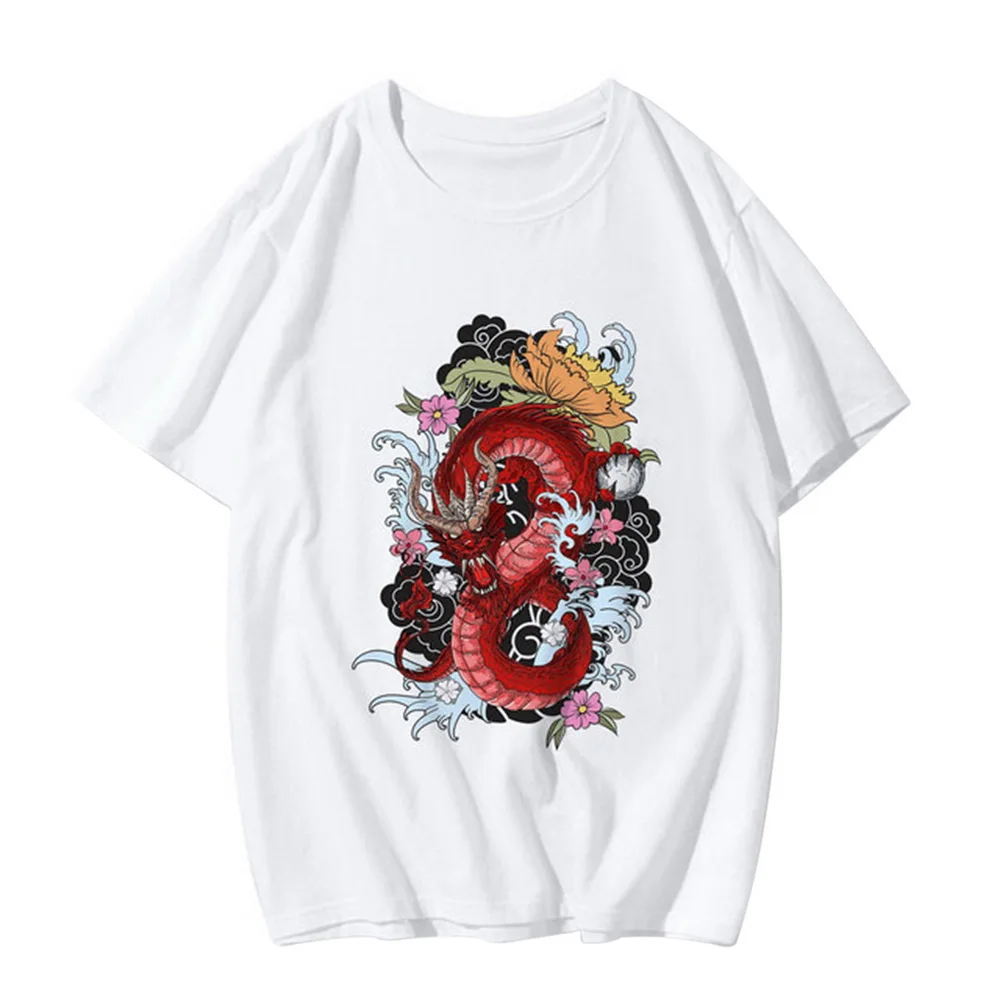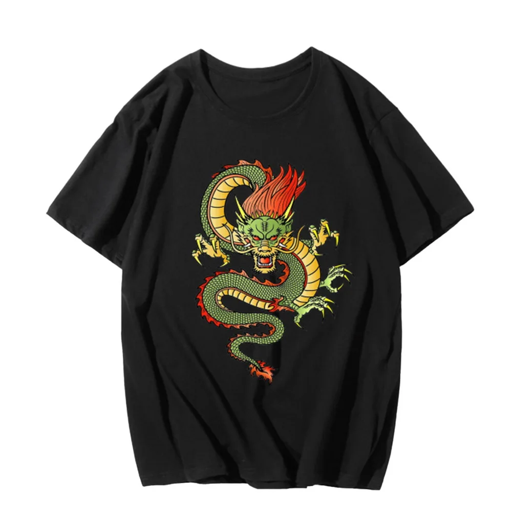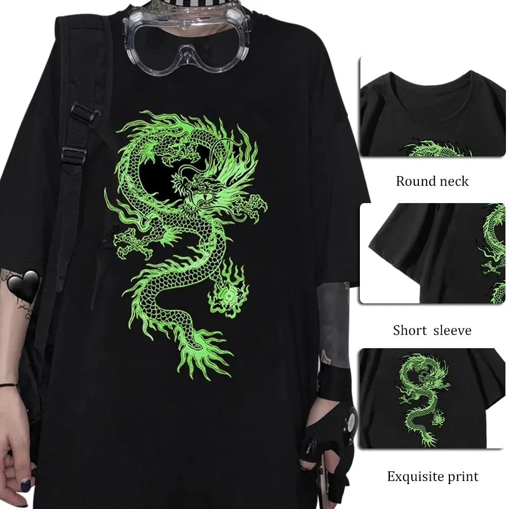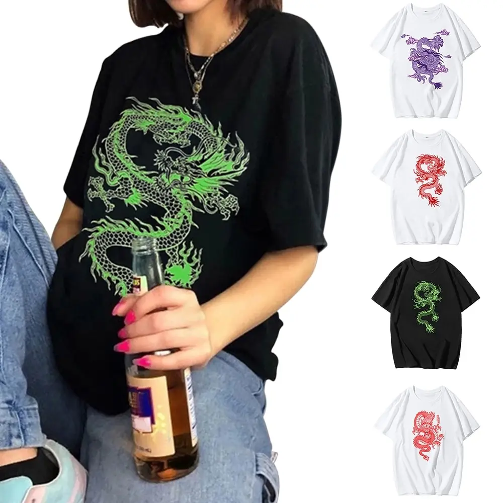 Футболка женская свободного покроя в винтажном стиле, уличная одежда с китайским драконом, Топ в стиле Харадзюку, размера плюс в стиле панк, лето