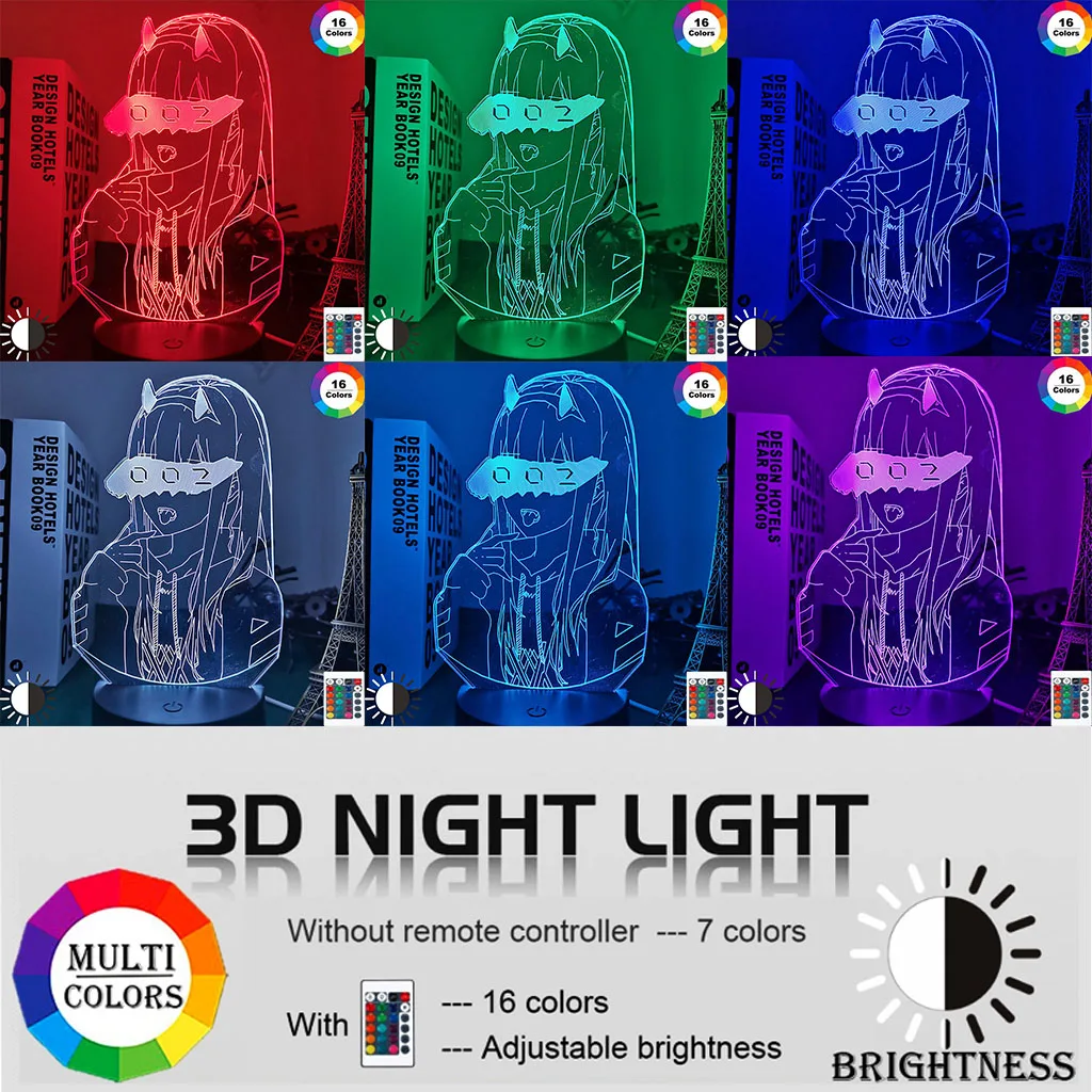 Светодиодный ночной 3D светильник, Градуированный в FRANXX Zero Two 002, для рождественского подарка и украшения спальни, аниме лампа, светодиодный светильник