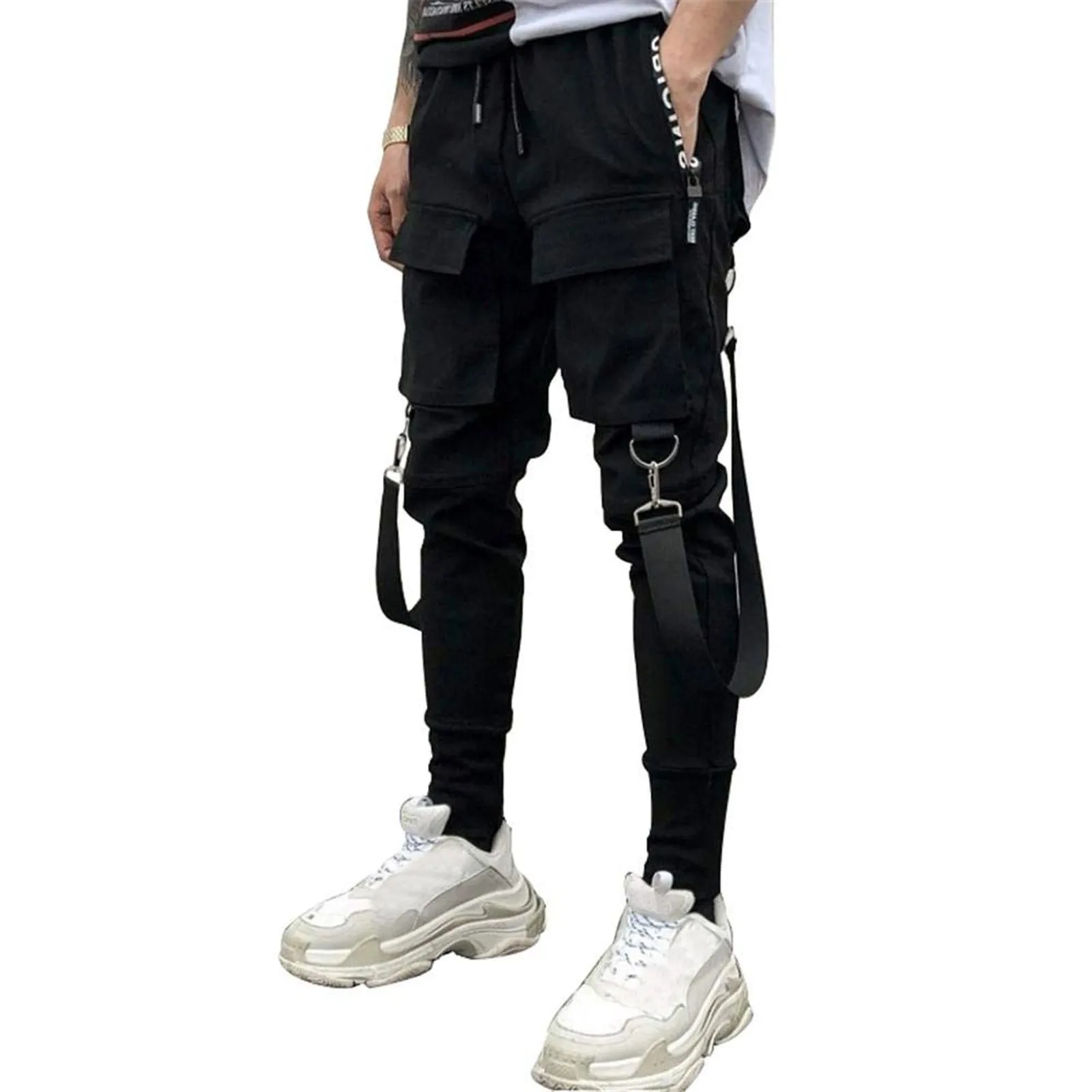Брюки-карго мужские, джоггеры, шаровары с несколькими карманами, с лентами, спортивные штаны, уличная одежда, повседневные штаны с эластичным поясом