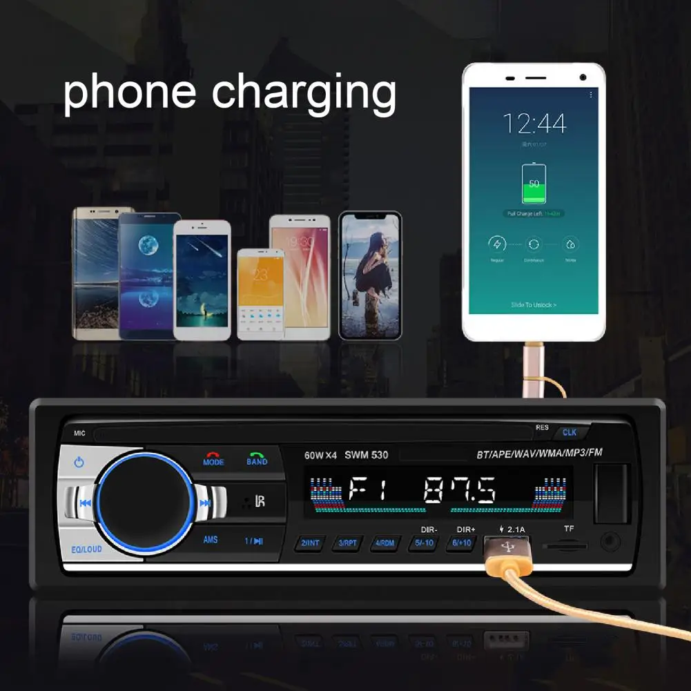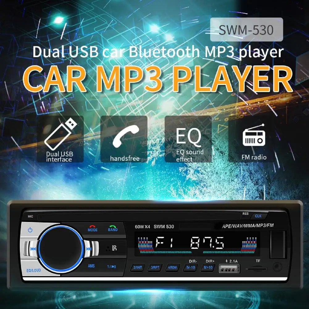 Мультимедийный MP3-плеер с двумя USB-разъемами для зарядки телефона, FM-радио, AUX, U-дисков, Bluetooth, воспроизведение карт, зарядное устройство 12 В, Автомобильный MP3-плеер SWM-530