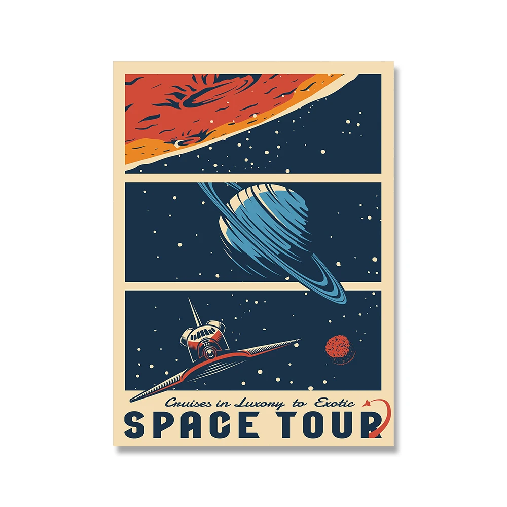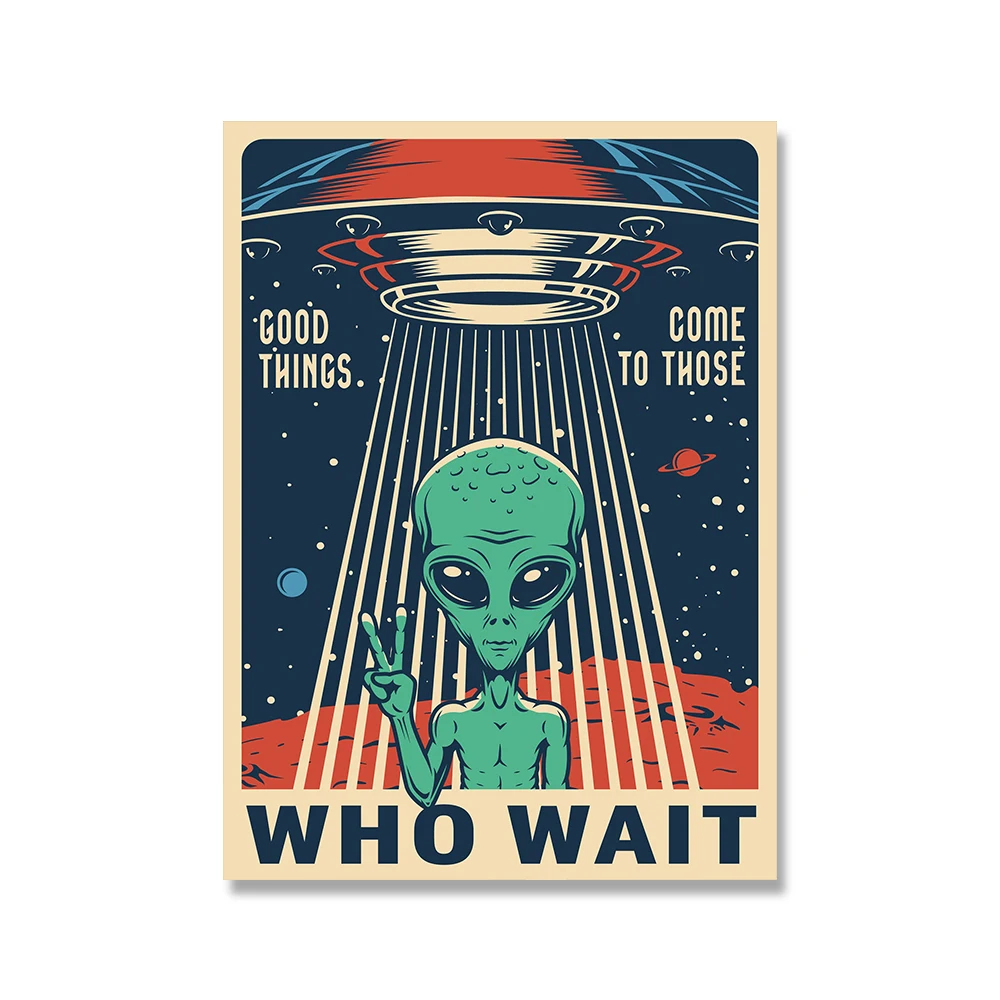 Hd Печать винтажная живопись пространство Ретро постеры с инопланетянином пейзаж из путешествия постер Настенная картина для гостиной украшение дома