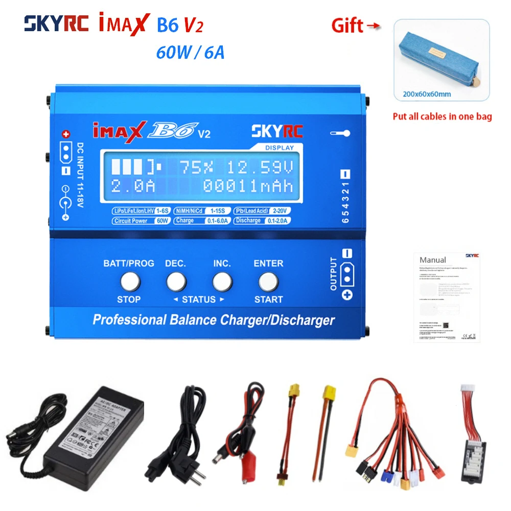Балансирующее зарядное устройство SKYRC IMAX B6 V2 B6V2 6A 60 Вт, зарядное устройство с адаптером для литий-ионных аккумуляторов DJI Mavic TB4X NiMH NiCD LiHV NiCd PB