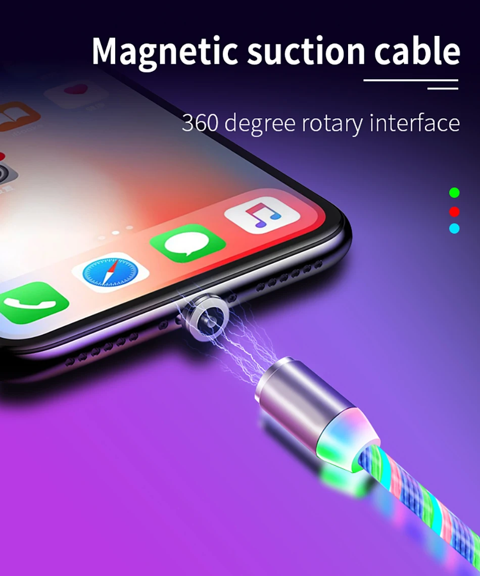 Зарядный кабель Micro USB Type-C, магнитный, со светодиодной подсве...