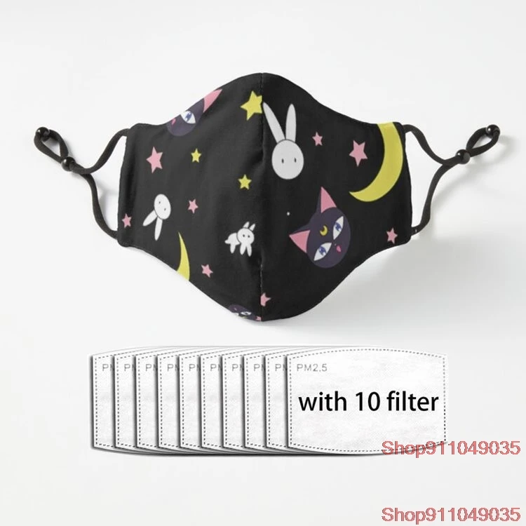 Маска для взрослых с рисунком Сейлор Мун, моющаяся маска для лица с принтом Pm2.5, фильтры для принта, маски для лица унисекс, Пылезащитная маска для рта