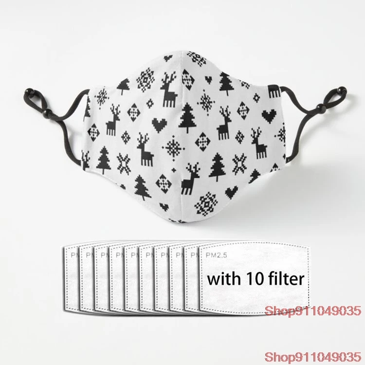 Пиксельный узор зимняя черно-белая маска для лица для взрослых Пылезащитная многоразовая Роскошная маска для лица из полиэстера с фильтром