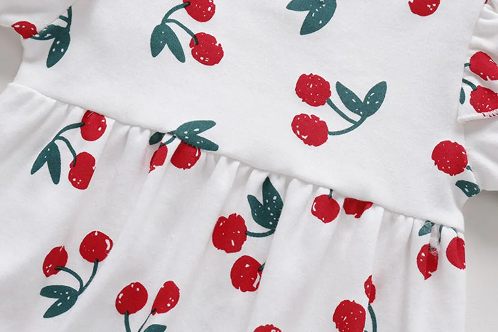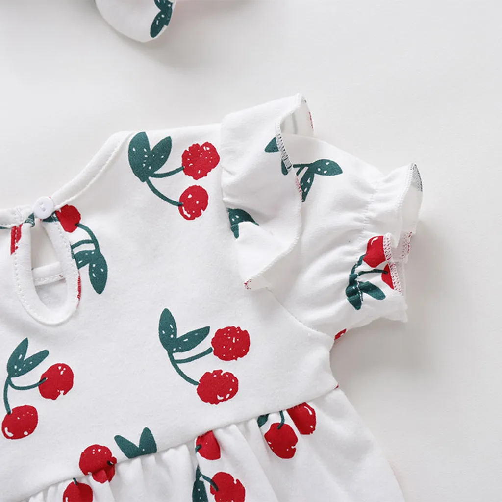Боди для новорожденных, комбинезон для маленьких девочек с рюшами, моно-повязка для волос, одежда, наряды в Корейском стиле с принтом вишневого элемента