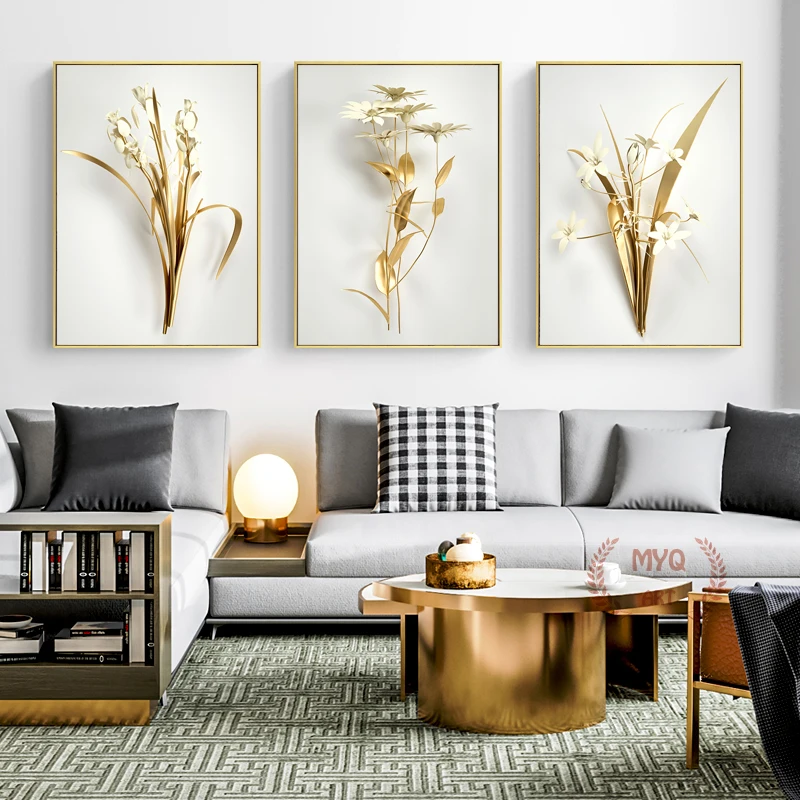 Позолоченная картина с золотыми цветами в скандинавском стиле, наст...