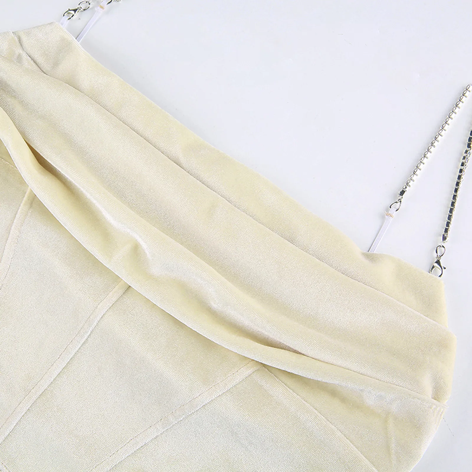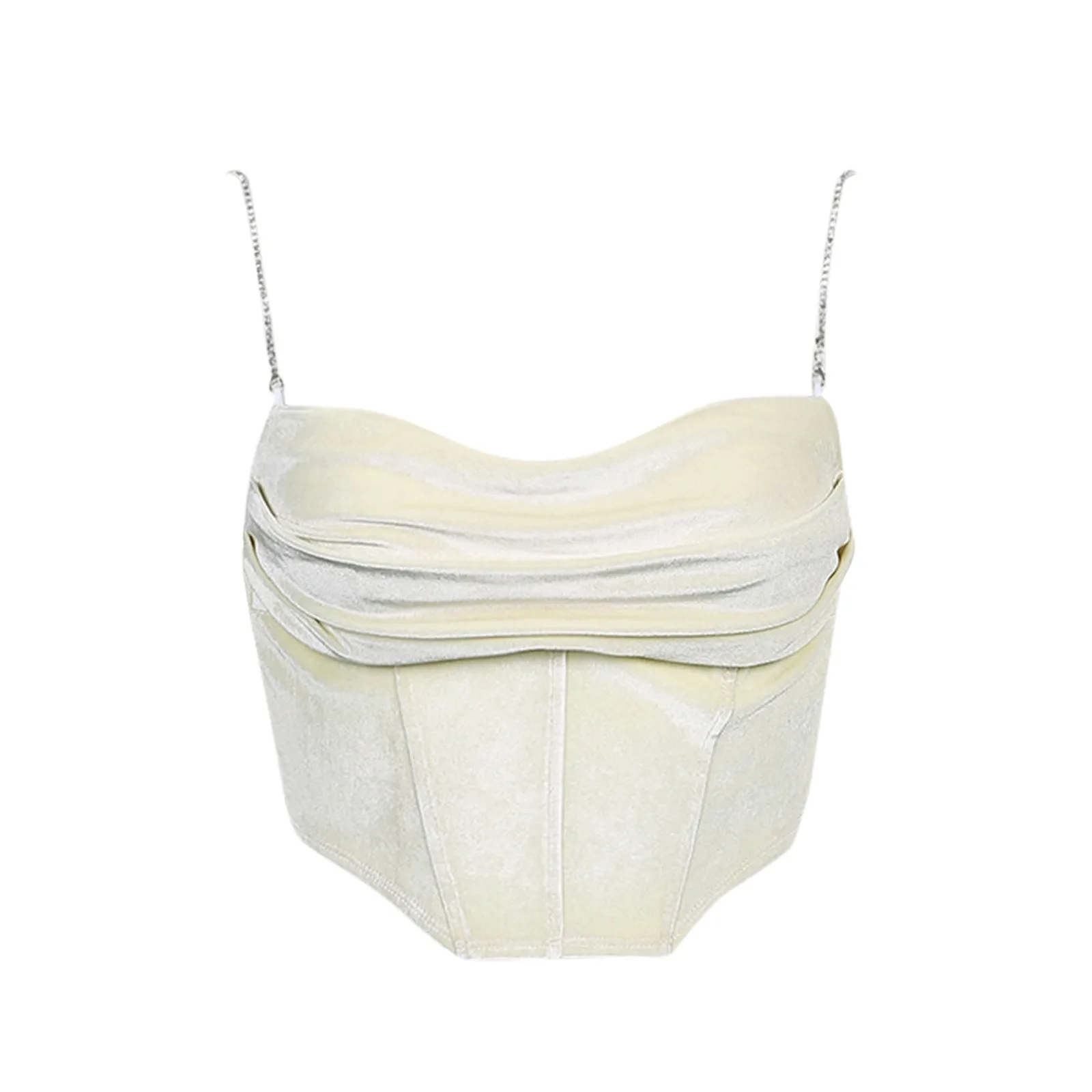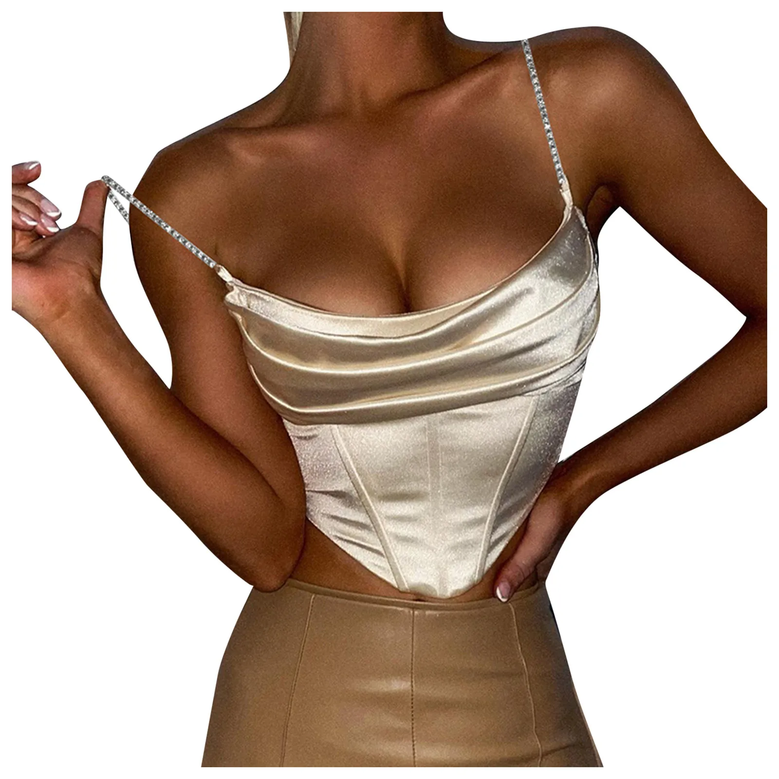 Майка женская шелковая, модный пикантный кроп-топ с металлической цепочкой, воротник-слинг, облегающий вечерний уличный корсет, топ, короткая футболка