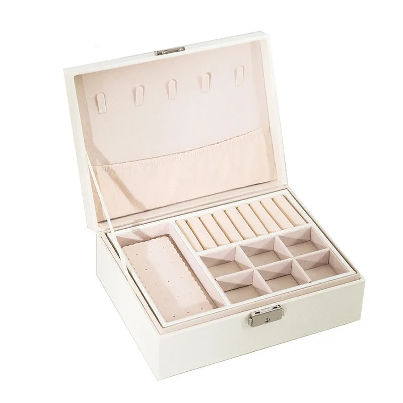 Двухслойная шкатулка для украшений из искусственной кожи, деревянный чехол с замком
